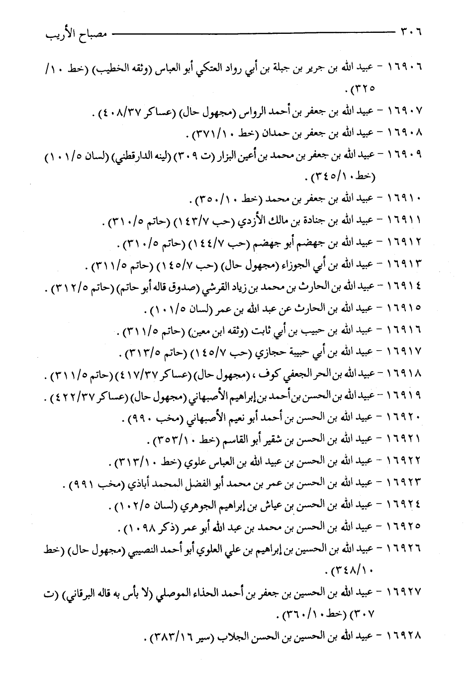 16927 - عبيد الله بن الحسين بن جعفر بن أحمد الحذاء الموصلي (لا بأس به قاله البرقاني) (ت 307) (خط 10/ 360).