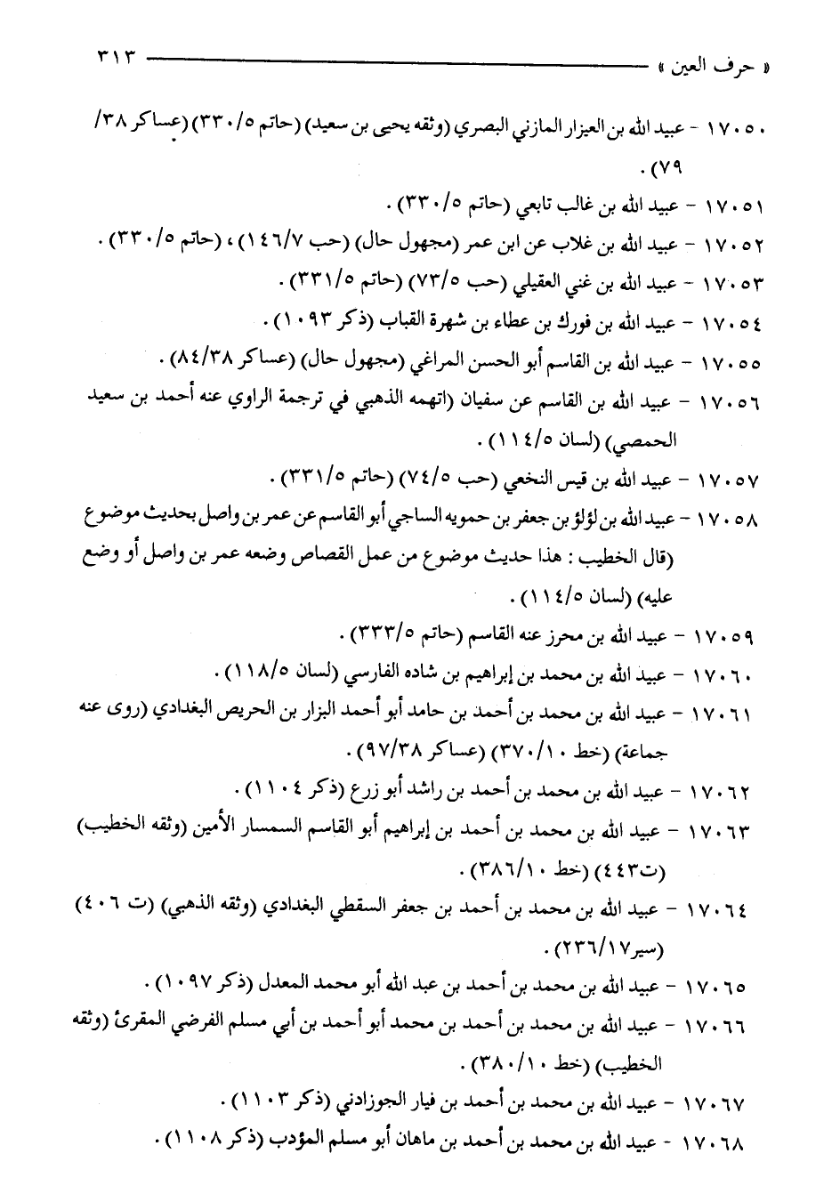 17063 - عبيد الله بن محمد بن أحمد بن إبراهيم أبو القاسم السمسار الأمين (وثقه الخطيب) (ت 443) (خط 10/ 386).