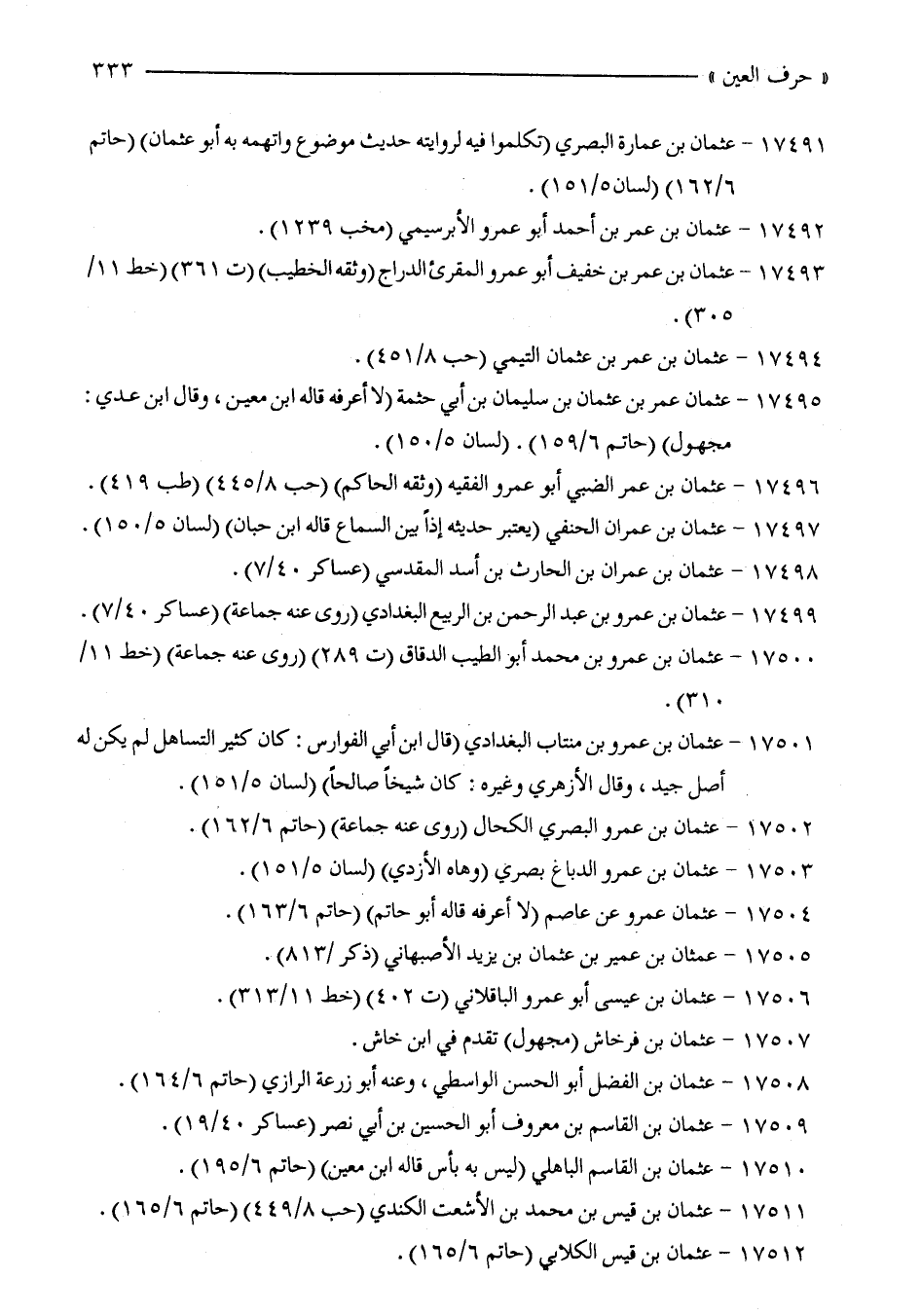 17498 - عثمان بن عمران بن الحارث بن أسد المقدسي (عساكر 40/ 7).