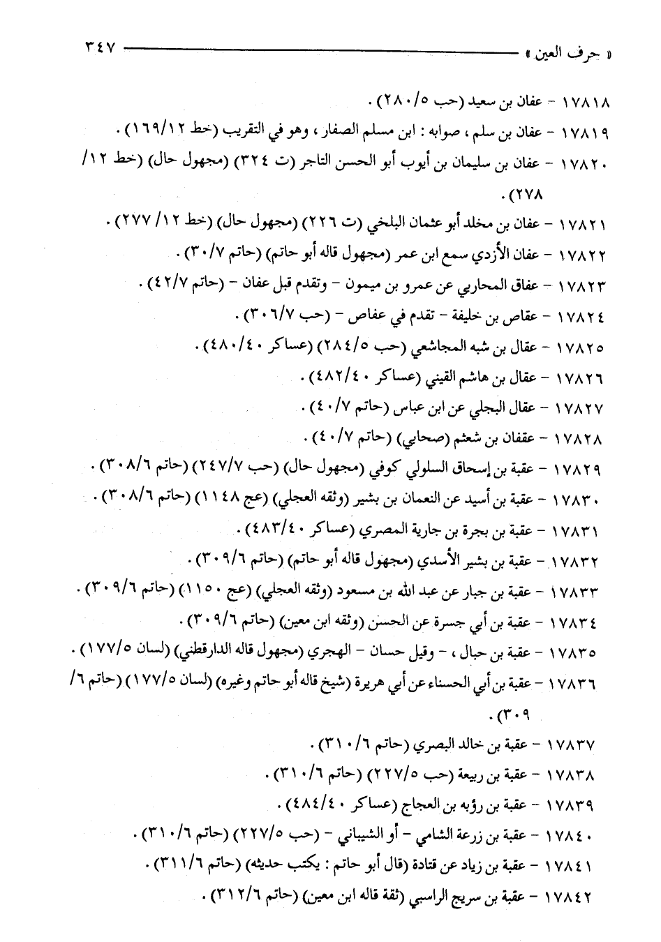 17842 - عقبة بن سريج الراسبي (ثقة قاله ابن معين) (حاتم 6/ 312).