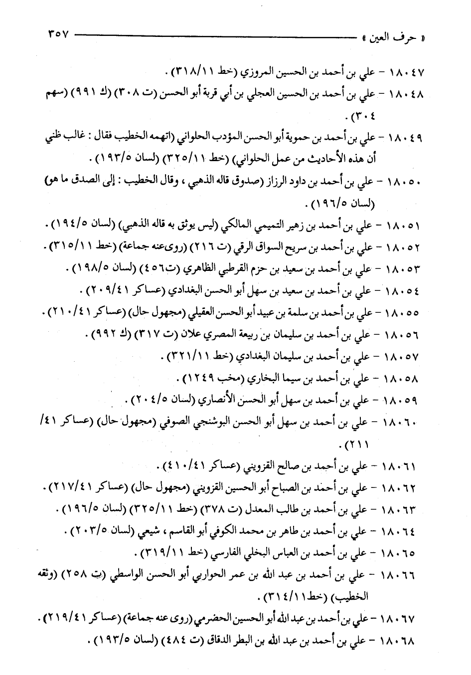 18067 - علي بن أحمد بن عبد الله أبو الحسين الحضرمي (روى عنه جماعة) (عساكر 41/ 219).
