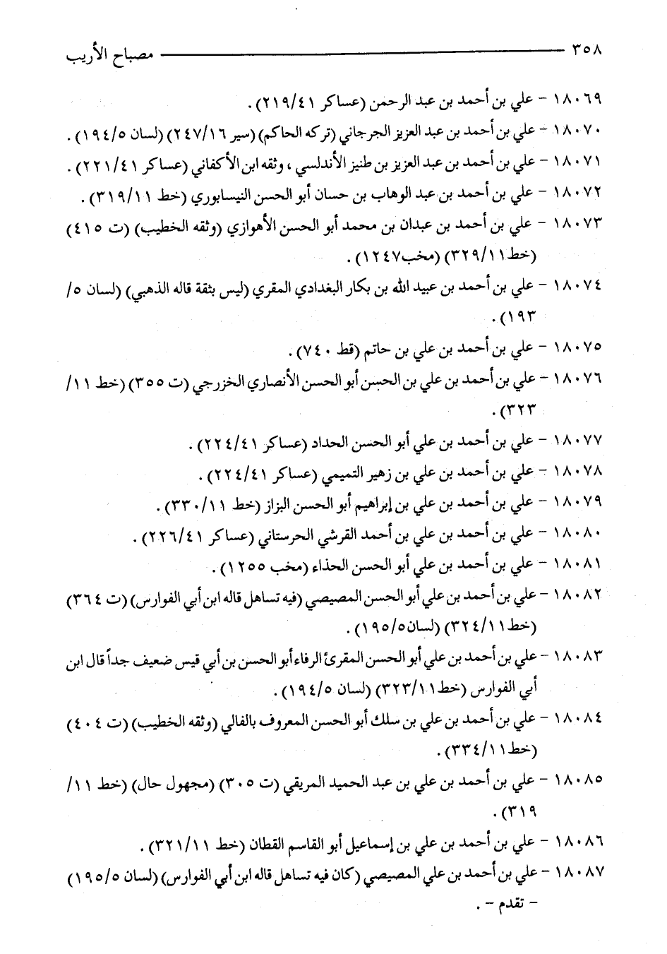 18073 - علي بن أحمد بن عبدان بن محمد أبو الحسن الأهوازي (وثقه الخطيب) (ت 415) (خط 11/ 329) (مخب 1247).