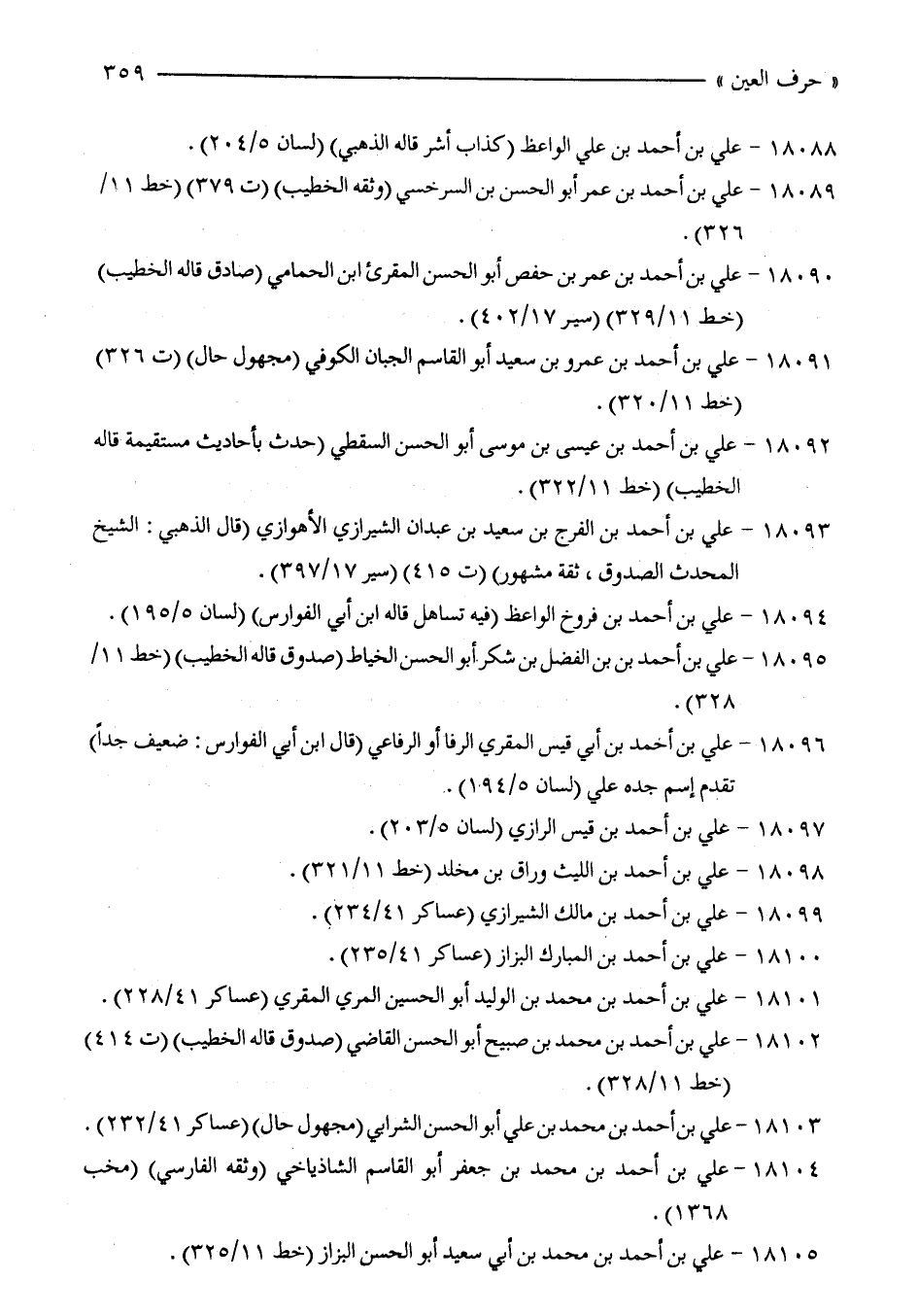 18089 - علي بن أحمد بن عمر أبو الحسن بن السرخسي (وثقه الخطيب) (ت 379) (خط 11/ 326).
