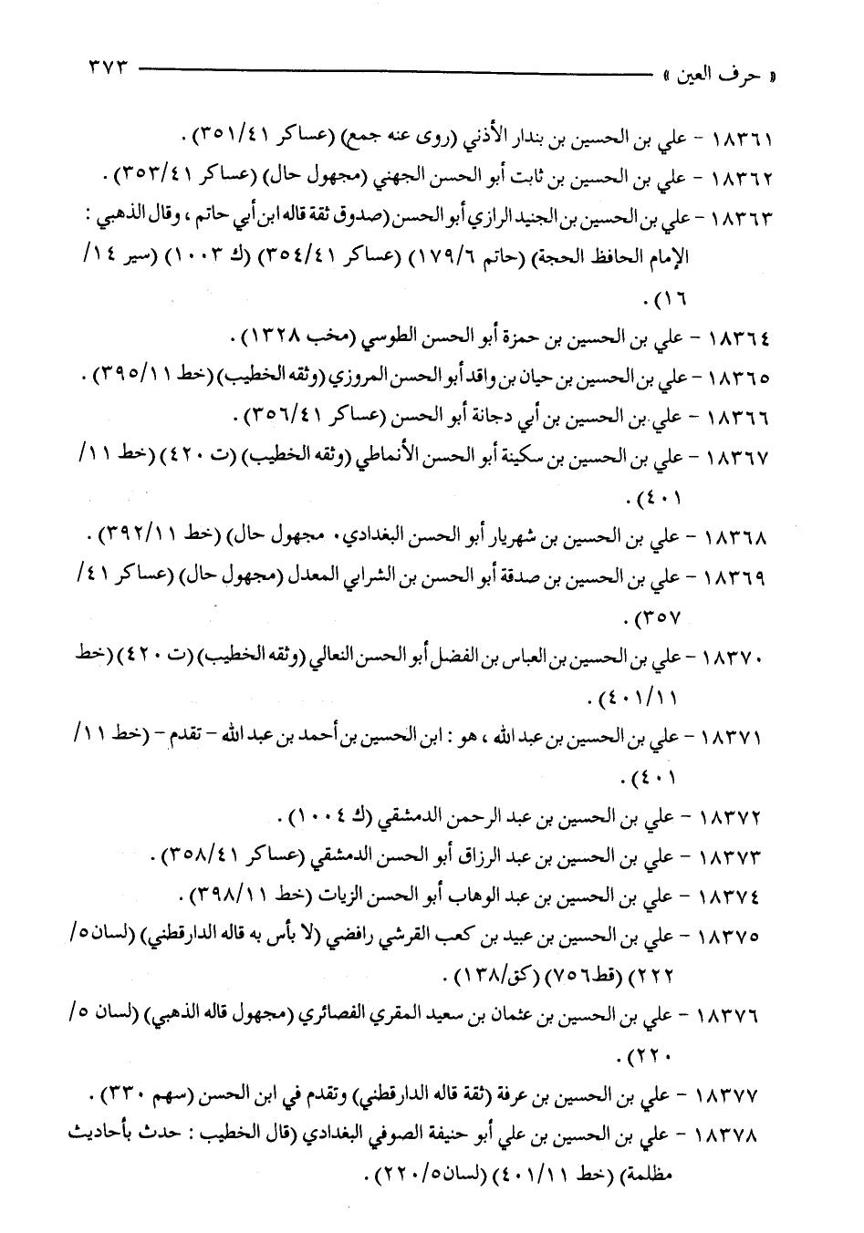 18373 - علي بن الحسين بن عبد الرزاق أبو الحسن الدمشقي (عساكر 41/ 358).