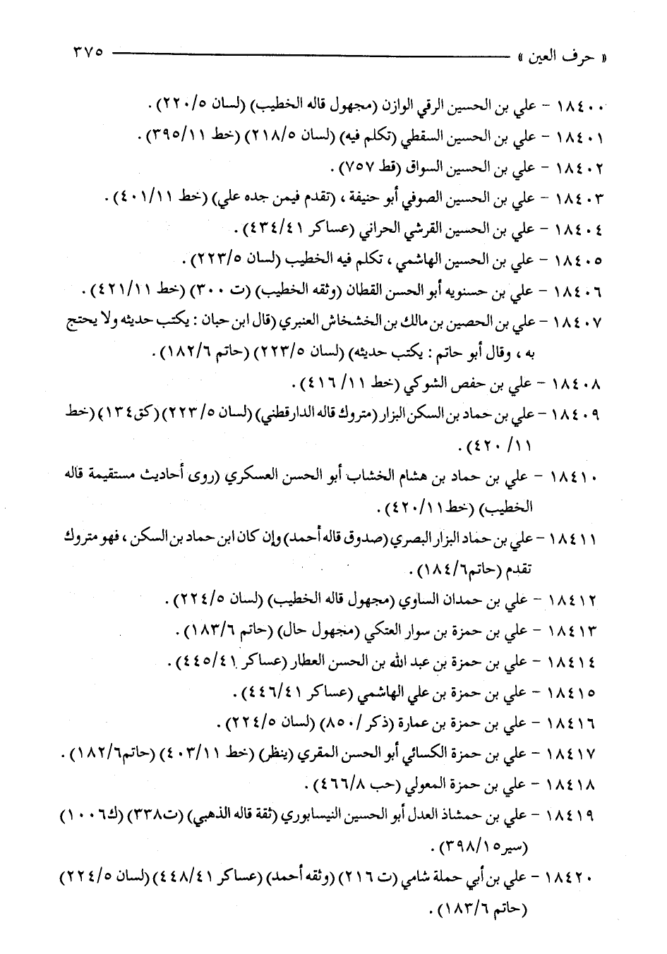 18400 - علي بن الحسين الرقي الوازن (مجهول قاله الخطيب) (لسان 5/ 220).