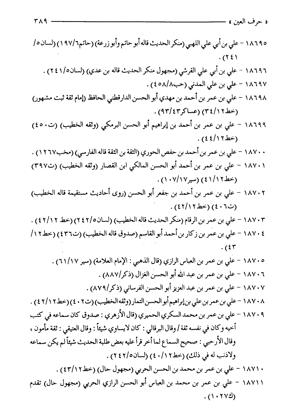 18710 - علي بن عمر بن محمد بن الحسن الحربي (مجهول حال) (خط 12/ 43).