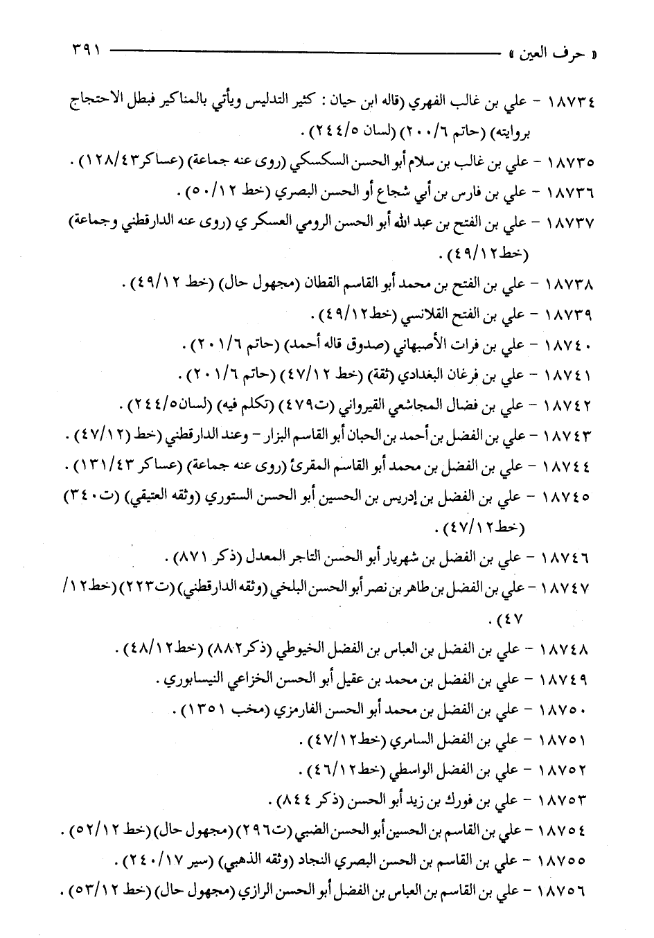 18747 - علي بن الفضل بن طاهر بن نصر أبو الحسن البلخي (وثقه الدارقطني) (ت 223) (خط 12/ 47).