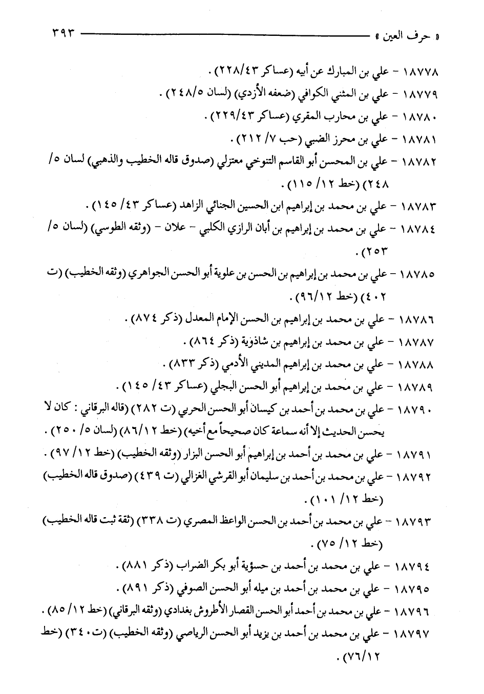 18793 - علي بن محمد بن أحمد بن الحسن الواعظ المصري (ت 338) (ثقة ثبت قاله الخطيب) (خط 12/ 75).