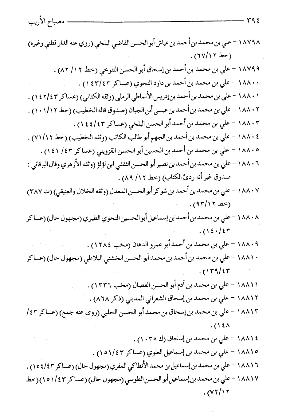 18817 - علي بن محمد بن اسماعيل أبو الحسن الطوسي (مجهول حال) (عساكر 43/ 151) (خط 12/ 72).