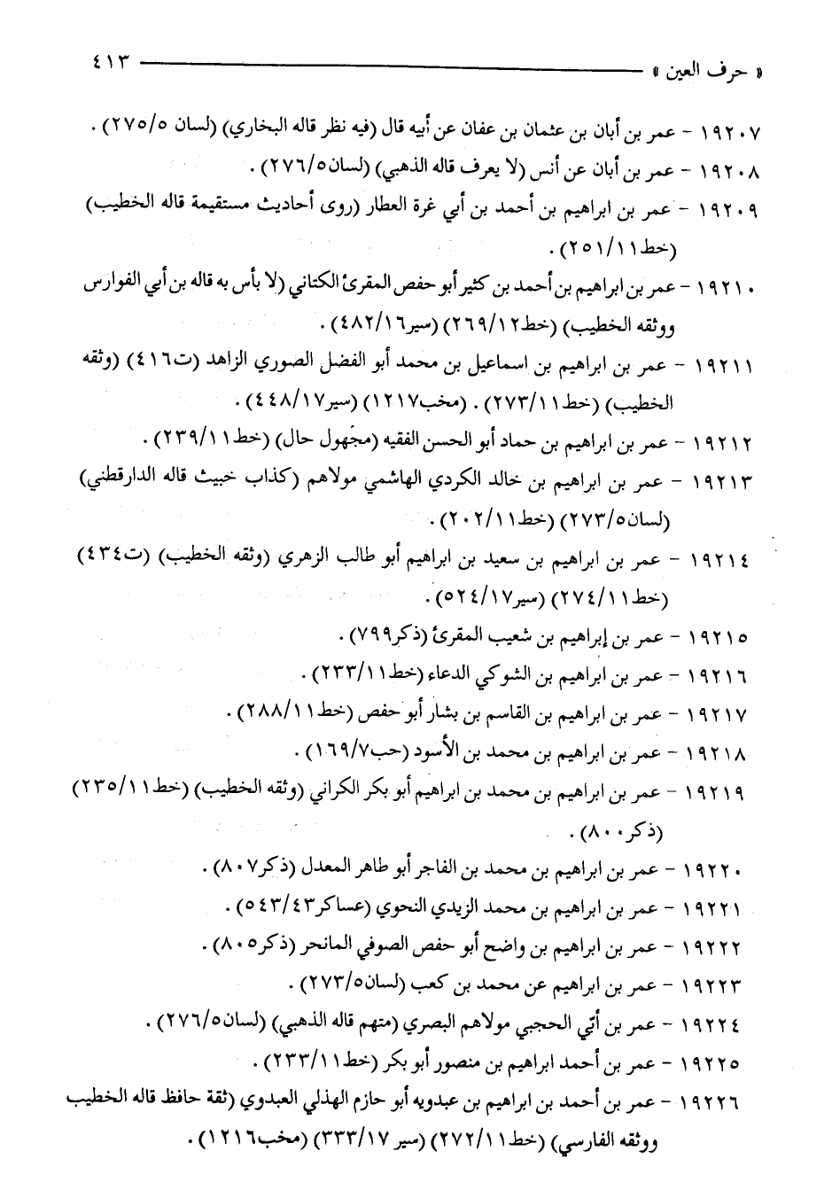 19212 - عمر بن إبراهيم بن حماد أبو الحسن الفقيه (مجهول حال) (خط 11/ 239).