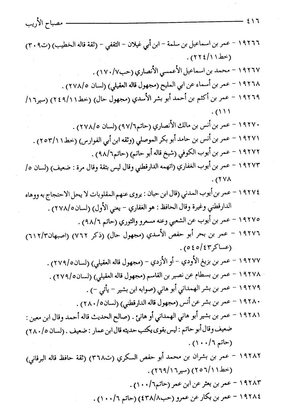 19268 - عمر بن أسماء عن أبي المليح (مجهول قاله العقيلي) (لسان 5/ 278).