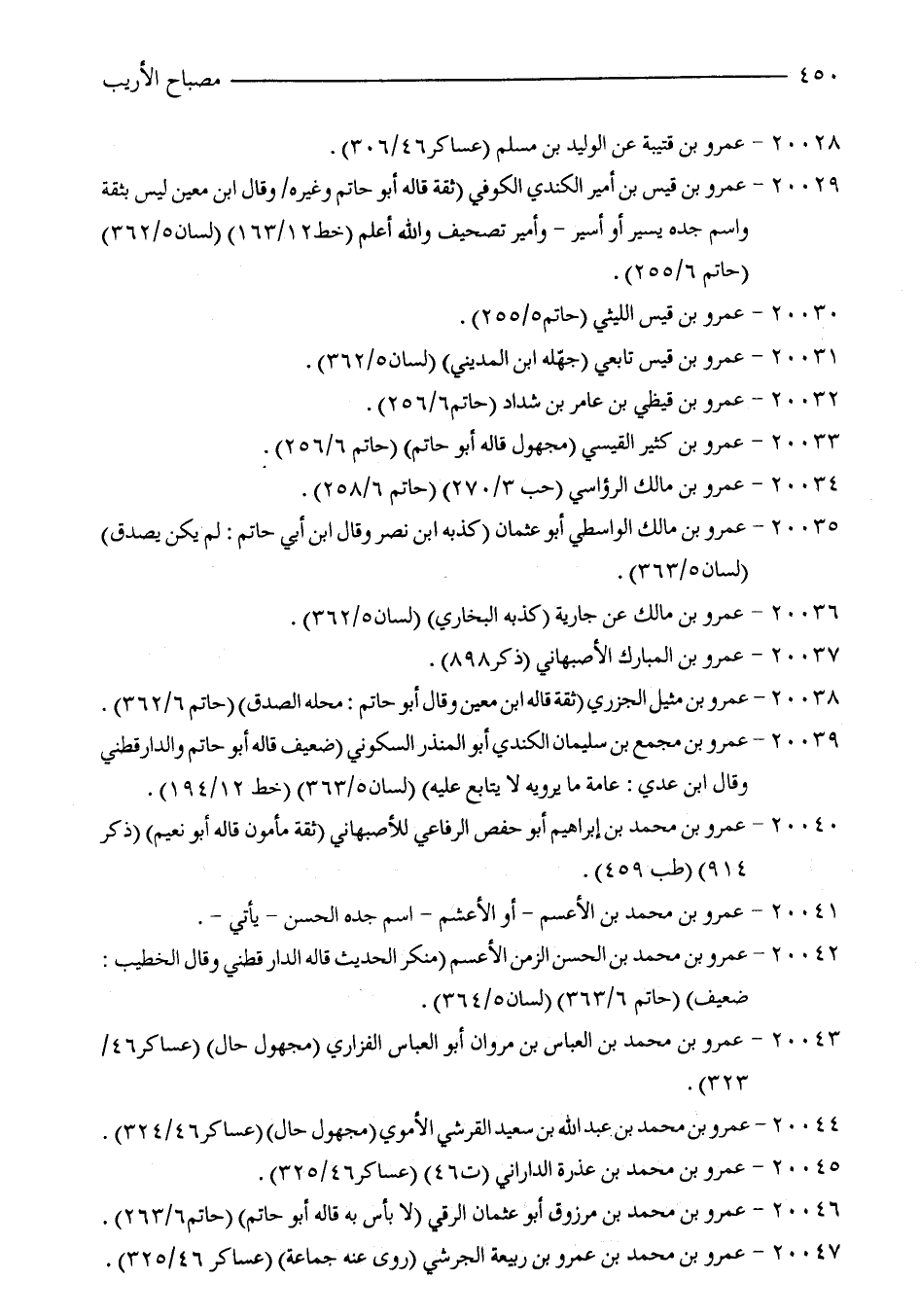 20040 - عمرو بن محمد بن إبراهيم أبو حفص الرفاعي للأصبهاني (ثقة مأمون قاله أبو نعيم) (ذكر 914) (طب 459).