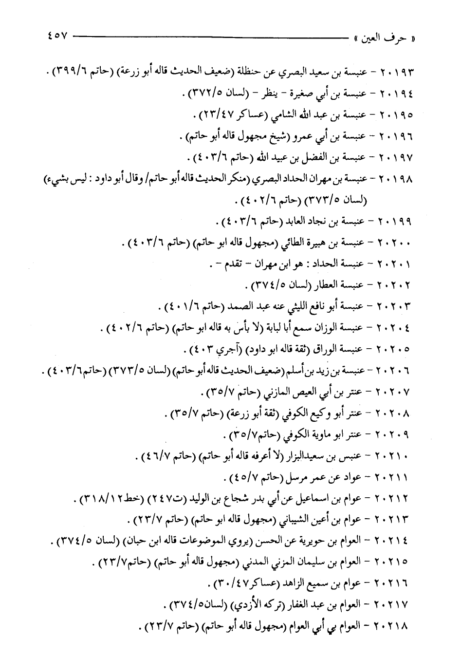 20199 - عنبسة بن نجاد العابد (حاتم 6/ 403).