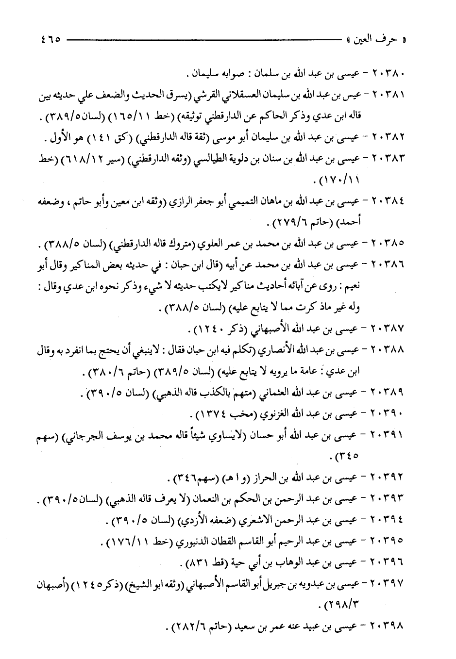 20391 - عيسى بن عبد الله أبو حسان (لا يساوي شيئًا قاله محمد بن يوسف الجرجاني) (سهم 345).