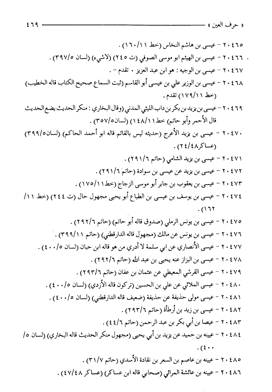 20480 - عيسى الملائي عن علي بن الحسين (تركون قاله الأزدي) (لسان 5/ 400).