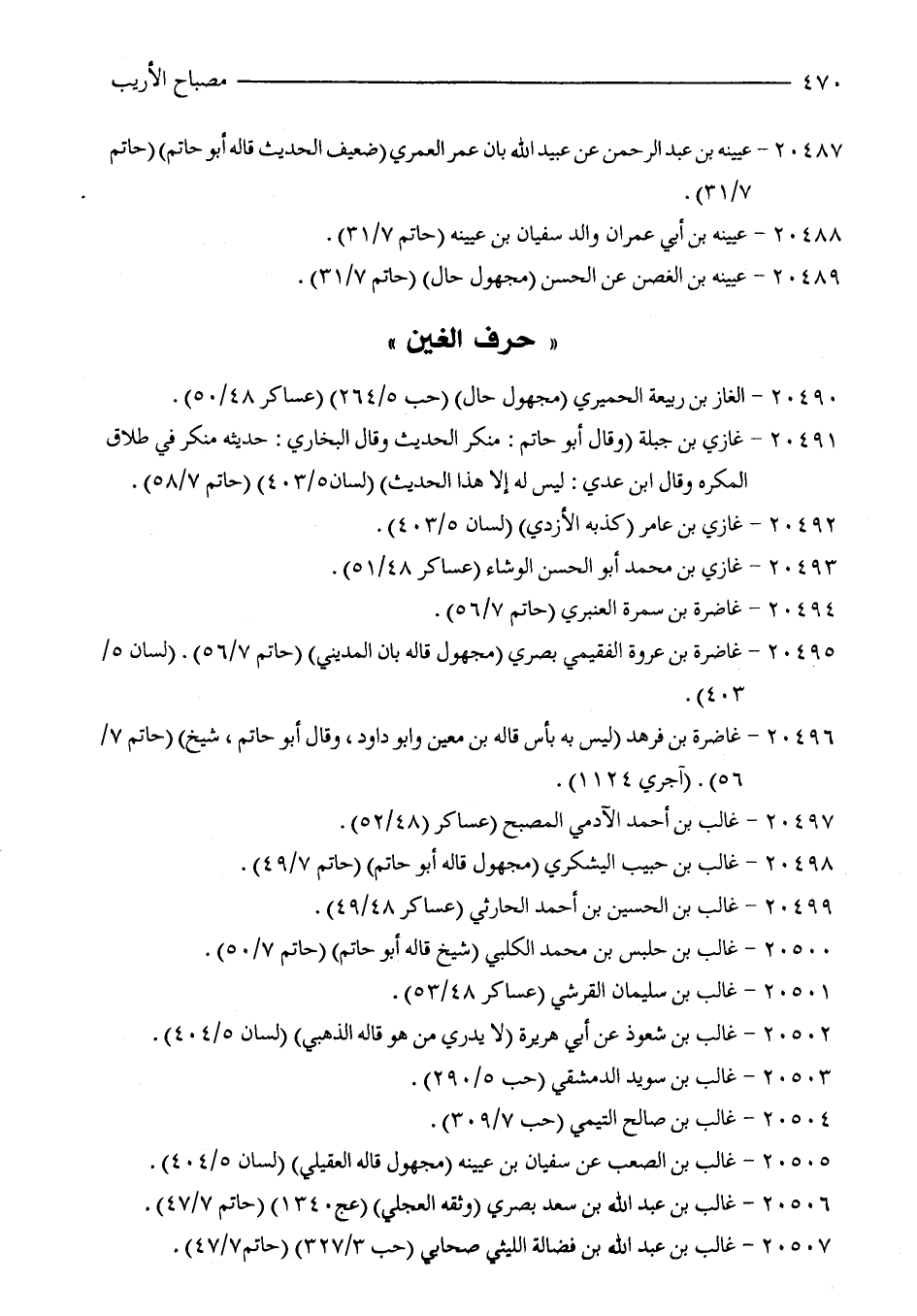 كتاب مصباح الأريب في تقريب الرواة الذين ليسوا في تقريب التهذيب (اسم الجزء: 2)