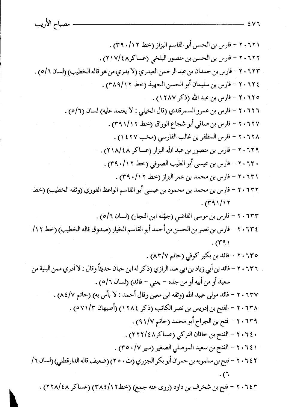 20623 - فارس بن حمدان بن عبد الرحمن العبدري (لا يدري من هو قاله الخطيب) (لسان 6/ 5).