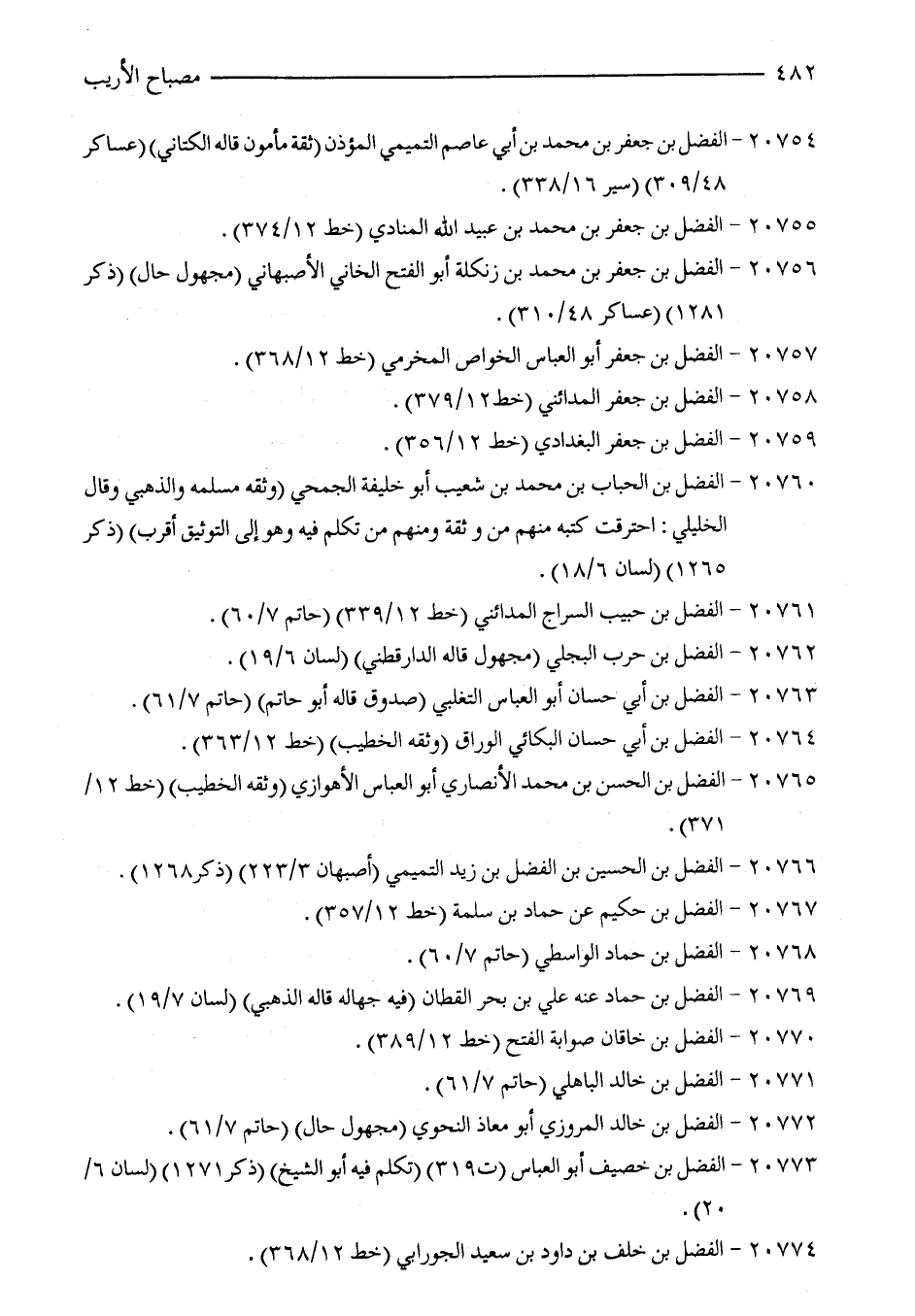 20761 - الفضل بن حبيب السراج المدائني (خط 12/ 339) (حاتم 7/ 60).