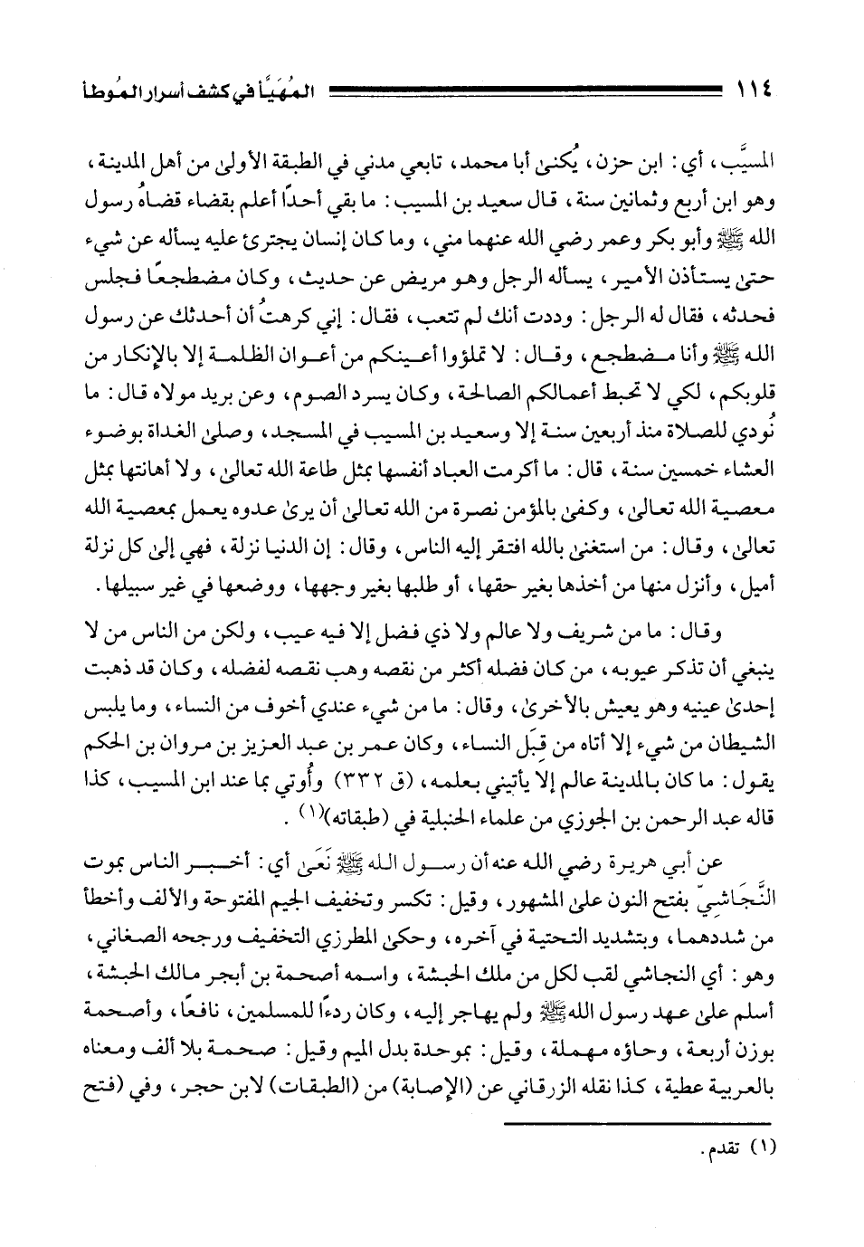 المسيَّب، أي: ابن حزن، يُكنى أبا محمد، تابعي مدني في الطبقة الأولى من أهل المدينة، وهو ابن أربع وثمانين سنة، قال سعيد بن المسيب: ما بقي أحدًا أعلم بقضاء قضاهُ رسول الله - صلى الله عليه وسلم - وأبو بكر وعمر رضي الله عنهما مني، وما كان إنسان يجترئ عليه يسأله عن شيء حتى يستأذن الأمير، يسأله الرجل وهو مريض عن حديث، وكان مضطجعًا فجلس فحدثه، فقال له الرجل: وددت أنك لم تتعب، فقال: إني كرهتُ أن أحدثك عن رسول الله - صلى الله عليه وسلم - وأنا مضطجع، وقال: لا تملؤوا أعينكم من أعوان الظلمة إلا بالإِنكار من قلوبكم، لكي لا تحبط أعمالكم الصالحة، وكان يسرد الصوم، وعن بريد مولاه قال: ما نُودي للصلاة منذ أربعين سنة إلا وسعيد بن المسيب في المسجد، وصلى الغداة بوضوء العشاء خمسين سنة، قال: ما أكرمت العباد أنفسها بمثل طاعة الله تعالى، ولا أهانتها بمثل معصية الله تعالى، وكفى بالمؤمن نصرة من الله تعالى أن يرى عدوه يعمل بمعصية الله تعالى، وقال: من استغنى بالله افتقر إليه الناس، وقال: إن الدنيا نزلة، فهي إلى كل نزلة أميل، وأنزل منها من أخذها بغير حقها، أو طلبها بغير وجهها، ووضعها في غير سبيلها.