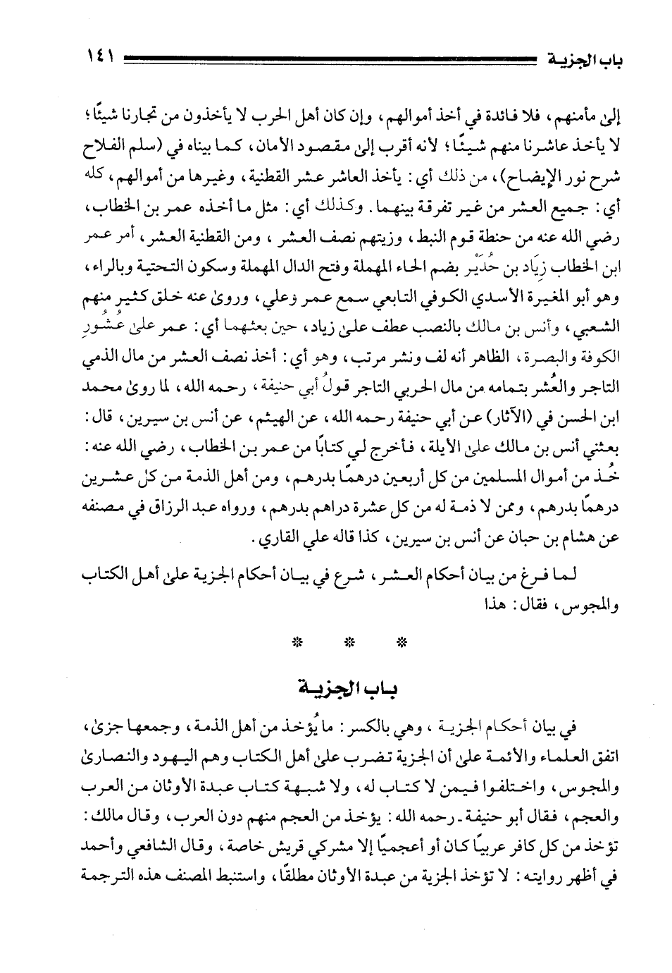 لما فرغ من بيان أحكام العشر، شرع في بيان أحكام الجزية على أهل الكتاب والمجوس، فقال: هذا