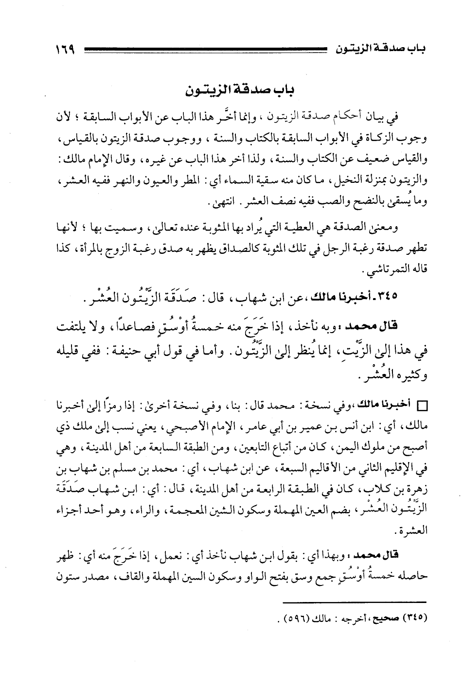 345 - أخبرنا مالك، عن ابن شهاب، قال: صَدَقَة الزَّيْتُون العُشْر.
