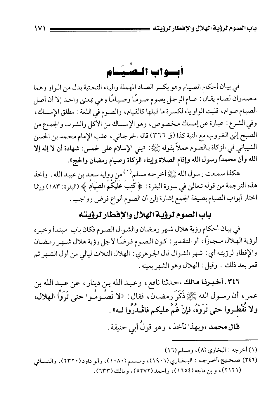 (346) صحيح، أخرجه: البخاري (1906)، ومسلم (1080)، وأبو داود (2320)، والنسائي (2121)، وابن ماجه (1654)، وأحمد (5272)، ومالك (633).