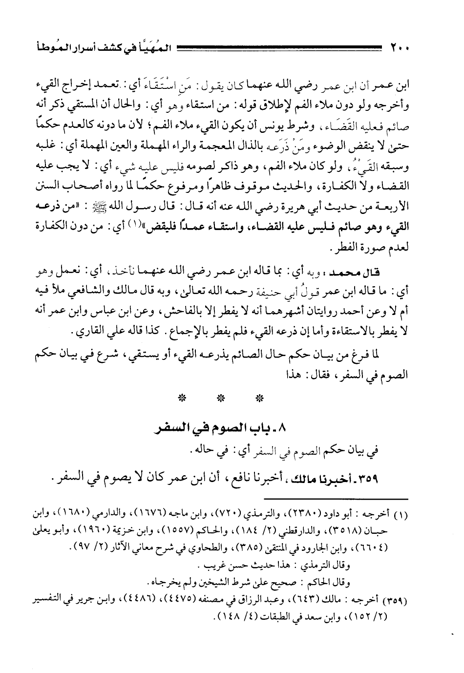 359 - أخبرنا مالك، أخبرنا نافع، أن ابن عمر كان لا يصوم في السفر.