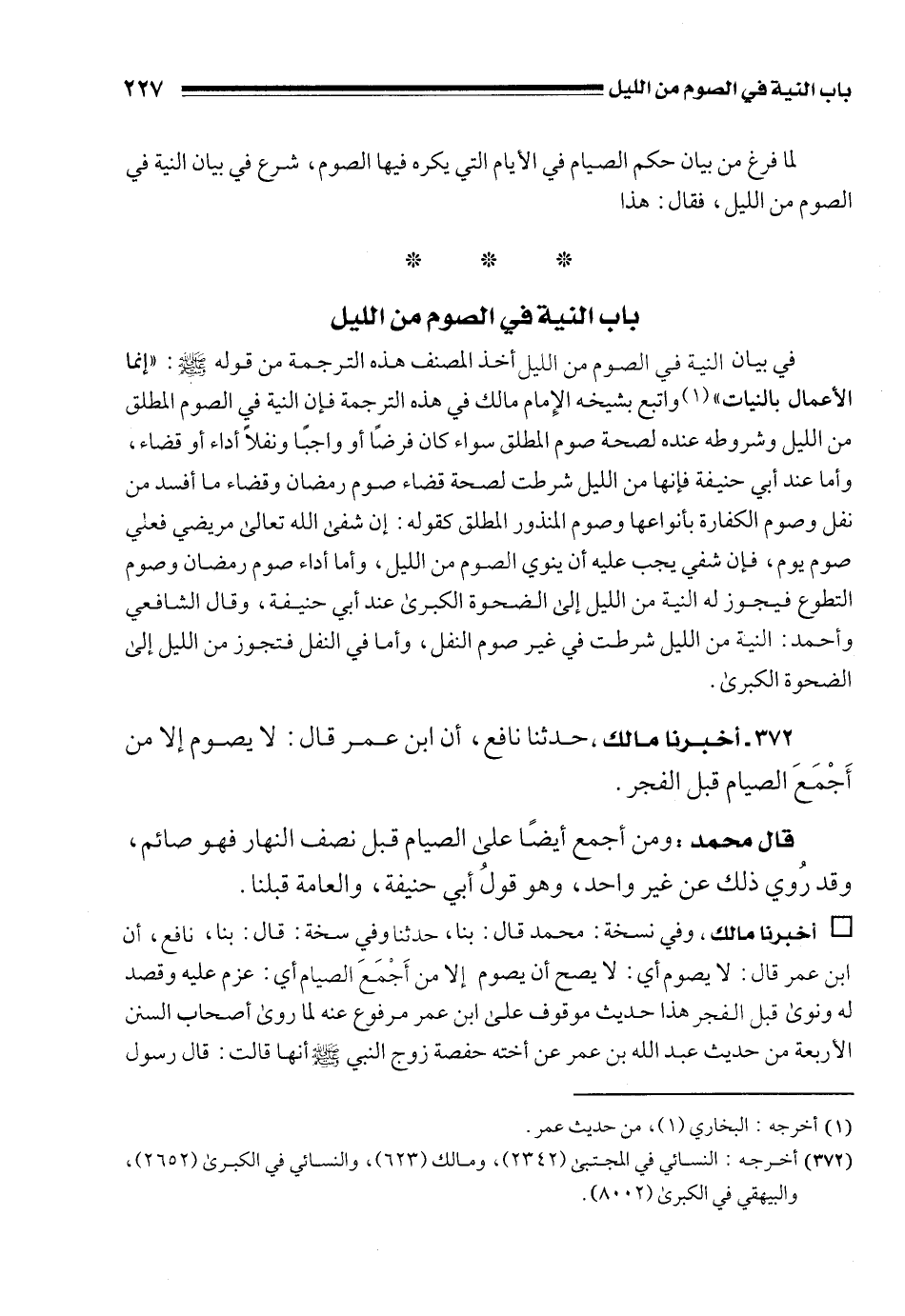 372 - أخبرنا مالك، حدثنا نافع، أن ابن عمر قال: لا يصوم إلا من أَجْمَعَ الصيام قبل الفجر.