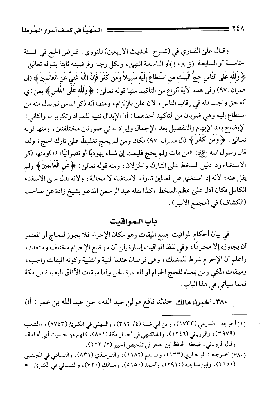 (380) أخرجه: البخاري (133)، ومسلم (1182)، والترمذي (831)، والنسائي في المجتبى (2650)، وابن ماجه (2914)، وأحمد (5150)، ومالك (720)، والنسائي في الكبرى =