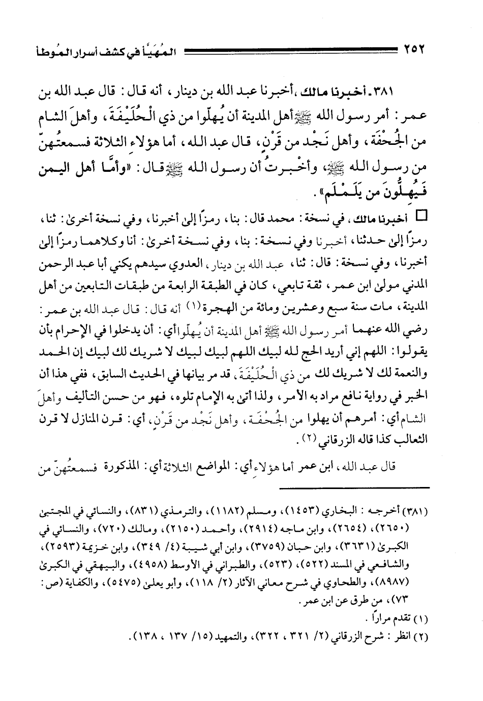 (¬2) انظر: شرح الزرقاني (2/ 321، 322)، والتمهيد (15/ 137، 138).
