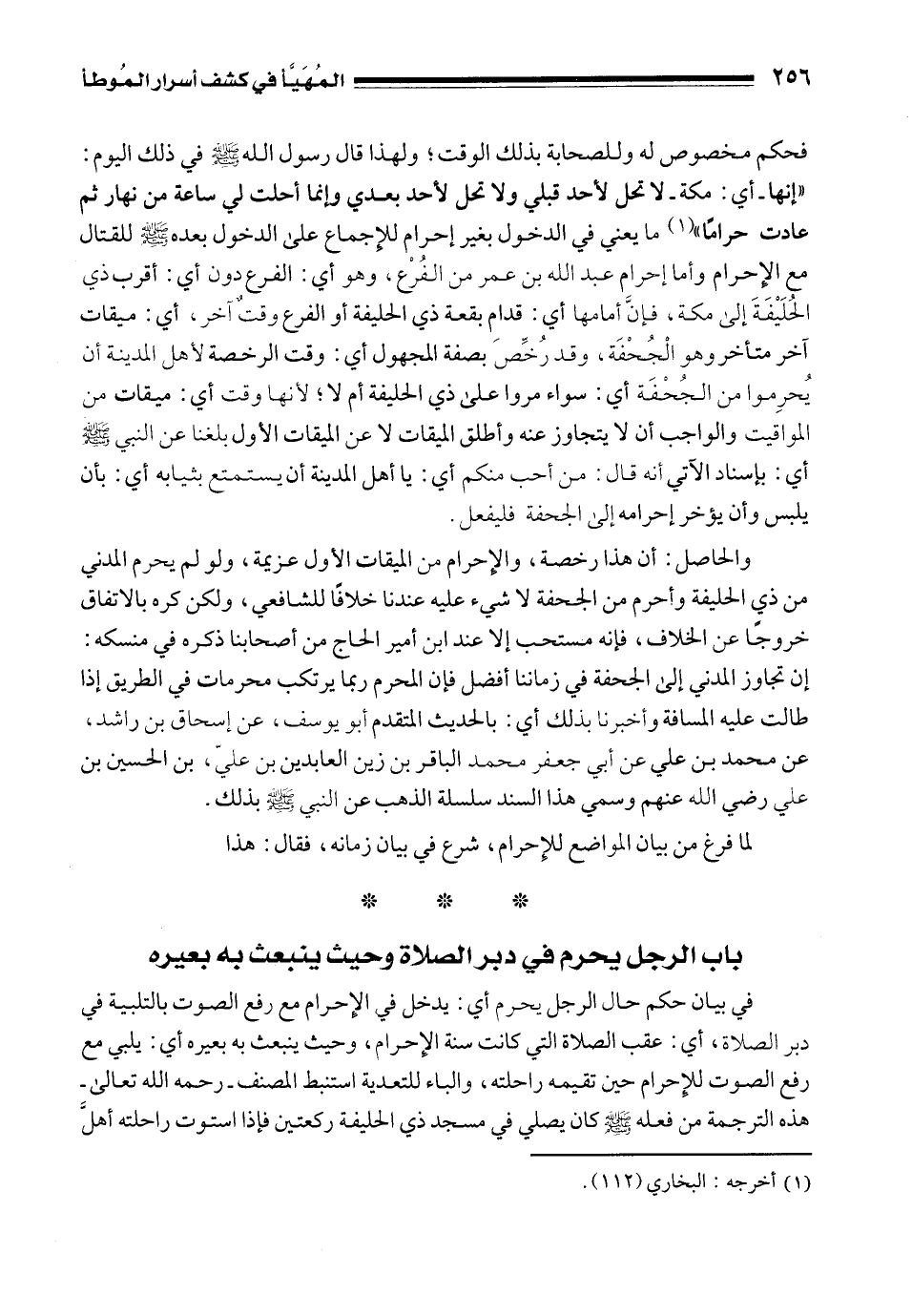 فحكم مخصوص له وللصحابة بذلك الوقت؛ ولهذا قال رسول الله - صلى الله عليه وسلم - في ذلك اليوم: "إنها - أي: مكة - لا تحل لأحد قبلي ولا تحل لأحد بعدي وإنما أحلت لي ساعة من نهار ثم عادت حرامًا" (¬1) ما يعني في الدخول بغير إحرام للإِجماع على الدخول بعده - صلى الله عليه وسلم - للقتال مع الإحرام وأما إحرام عبد الله بن عمر من الفُرْع، وهو أي: الفرع دون أي: أقرب ذي الحُلَيْفَةَ إلى مكة، فإنَّ أمامها أي: قدامِ بقعة ذي الحليفة أو الفرع وقتٌ آخر أي: ميقات آخر متأخر وهو الْجُحْفَة، وقد رُخِّص بصفة المجهول أي: وقت الرخصة لأهل المدينة أن يُحرِموا من الجُحْفَة أي: سواء مروا على ذي الحليفة أم لا؛ لأنها وقت أي: ميقات من المواقيت والواجب أن لا يتجاوز عنه وأطلق الميقات لا عن الميقات الأول بلغنا عن النبي - صلى الله عليه وسلم - أي: بإسناد الآتي أنه قال: من أحب منكم أي: يا أهل المدينة أن يستمتع بثيابه أي: بأن يلبس وأن يؤخر إحرامه إلى الجحفة فليفعل.
