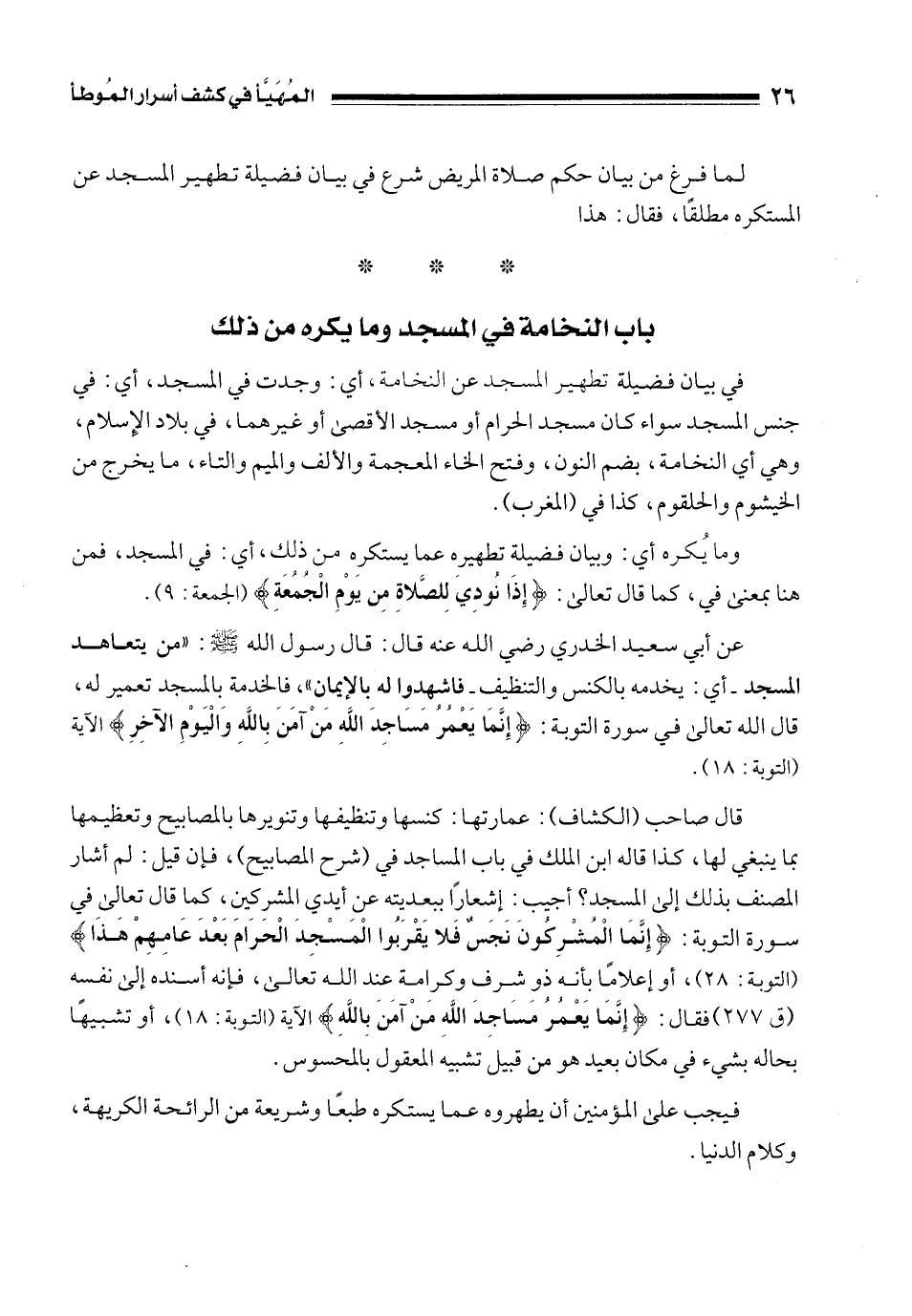 لما فرغ من بيان حكم صلاة المريض شرع في بيان فضيلة تطهير المسجد عن المستكره مطلقًا، فقال: هذا