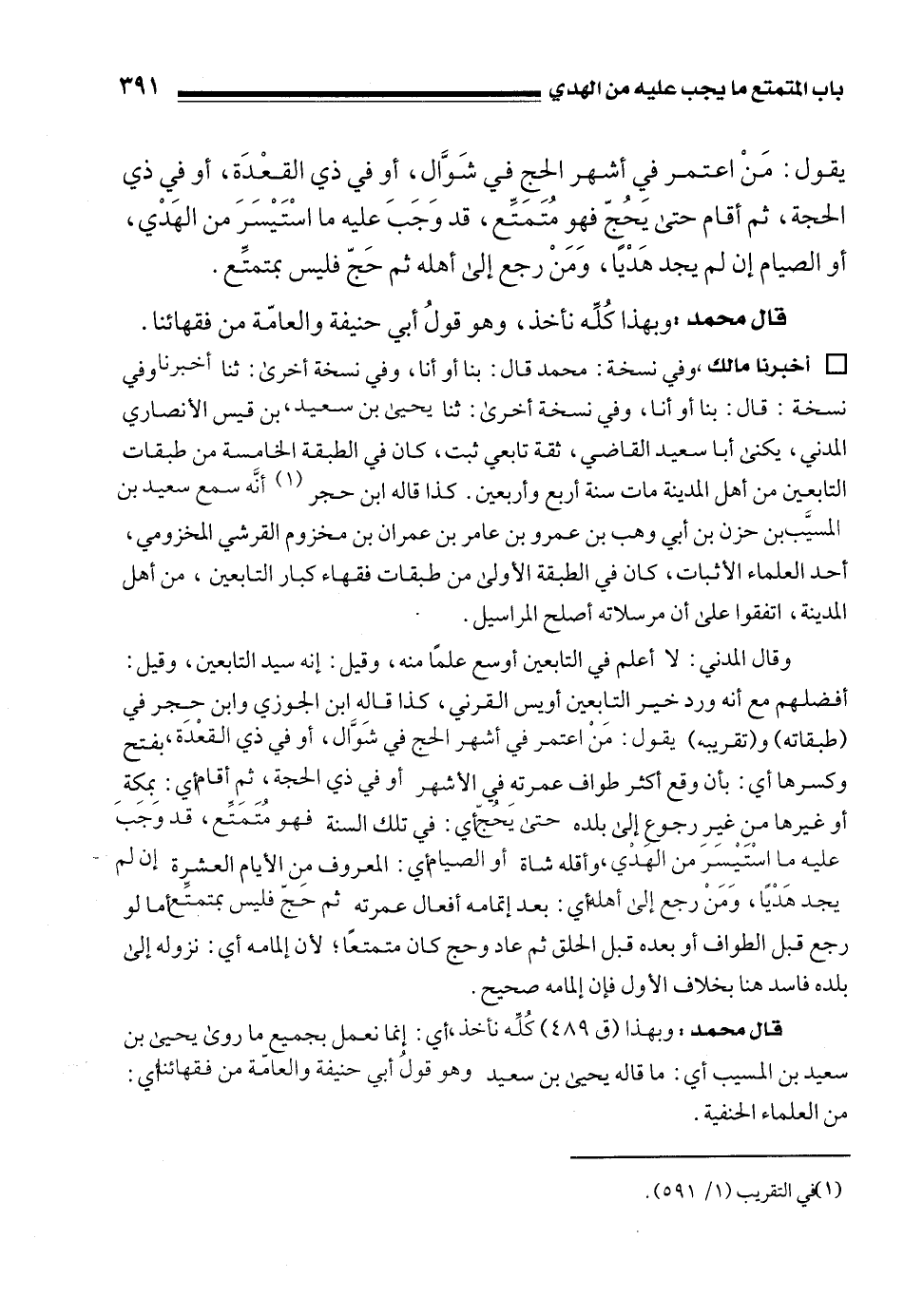 قال محمد: وبهذا (ق 489) كُلِّه نأخذ، أي: إنما نعمل بجميع ما روى يحيى بن سعيد بن المسيب أي: ما قاله يحيى بن سعيد وهو قولُ أبي حنيفة والعامّة من فقهائنا أي من العلماء الحنفية.