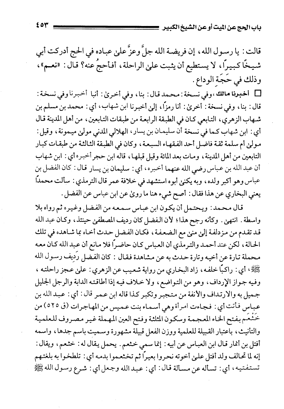 • أخبرنا مالك، وفي نسخة: محمد قال: بنا، وفي أخرى: أنبا أخبرنا وفي نسخة: قال: بنا، وفي نسخة: أخرى: أنا رمزًا، إلى أخبرنا ابن شهاب، أي: محمد بن مسلم بن شهاب الزهري، التابعي كان في الطبقة الرابعة من طبقات التابعين، من أهل المدينة قال أي: ابن شهاب كما في نسخة أن سليمان بن يسار، الهلالي المدني مولى ميمونة، وقيل: مولى أم سلمة ثقة فاضل أحد الفقهاء السبعة، وكان في الطبقة الثالثة من طبقات كبار التابعين من أهل المدينة، ومات بعد المائة وقيل قبلها، قاله ابن حجر أخبره أي: ابن شهاب أن عبد الله بن عباس رضي الله عنهما أخبره، أي: سليمان بن يسار قال: كان الفضل بن عباس وهو أكبر ولده، وبه يكنى أبوه استشهد في خلافة عمر قال الترمذي: سألت محمدًا يعني البخاري عن هذا فقال: أصح شيء هنا ما روى عن ابن عباس عن الفضل.