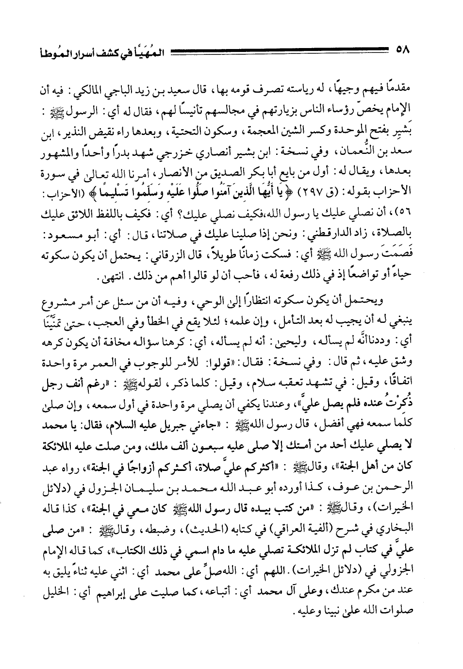 مقدمًا فيهم وجيهًا، له رياسته تصرف قومه بها، قال سعيد بن زيد الباجي المالكي: فيه أن الإِمام يخصّ رؤساء الناس بزيارتهم في مجالسهم تأنيسًا لهم، فقال له أي: الرسول - صلى الله عليه وسلم -: بَشِير بفتح الموحدة وكسر الشين المعجمة، وسكون التحتية، وبعدها راء نقيض النذير، ابن سعد بن النُّعمان، وفي نسخة: ابن بشير أنصاري خزرجي شهد بدرًا وأحدًا والمشهور بعدها، ويقال له: أول من بايع أبا بكر الصديق من الأنصار، أمرنا الله تعالى في سورة الأحزاب بقوله: (ق 297) {يَاأَيُّهَا الَّذِينَ آمَنُوا صَلُّوا عَلَيْهِ وَسَلِّمُوا تَسْلِيمًا} [الأحزاب: 56]، أن نصلي عليك يا رسول الله، فكيف نصلي عليك؟ أي: فكيف باللفظ اللائق عليك بالصلاة، زاد الدارقطني: ونحن إذا صلينا عليك في صلاتنا، قال: أي: أبو مسعود: فَصَمَتَ رسول الله - صلى الله عليه وسلم - أي: فسكت زمانًا طويلًا، قال الزرقاني: يحتمل أن يكون سكوته حياءً أو تواضعًا إذ في ذلك رفعة له، فأحب أن لو قالوا أهم من ذلك. انتهى.