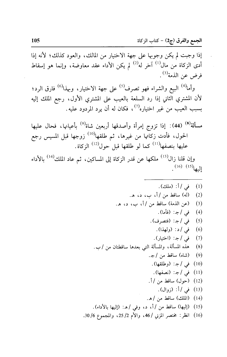 مسألة (٤٤): إذا تزوج امرأة وأصدقها أربعين شاة بأعيانها، فحال عليها الحول، فأدت زكاتها من غيرها، ثم طلقها زوجها قبل المسيس رجع عليها بنصفها كما لو طلقها قبل حول الزكاة.