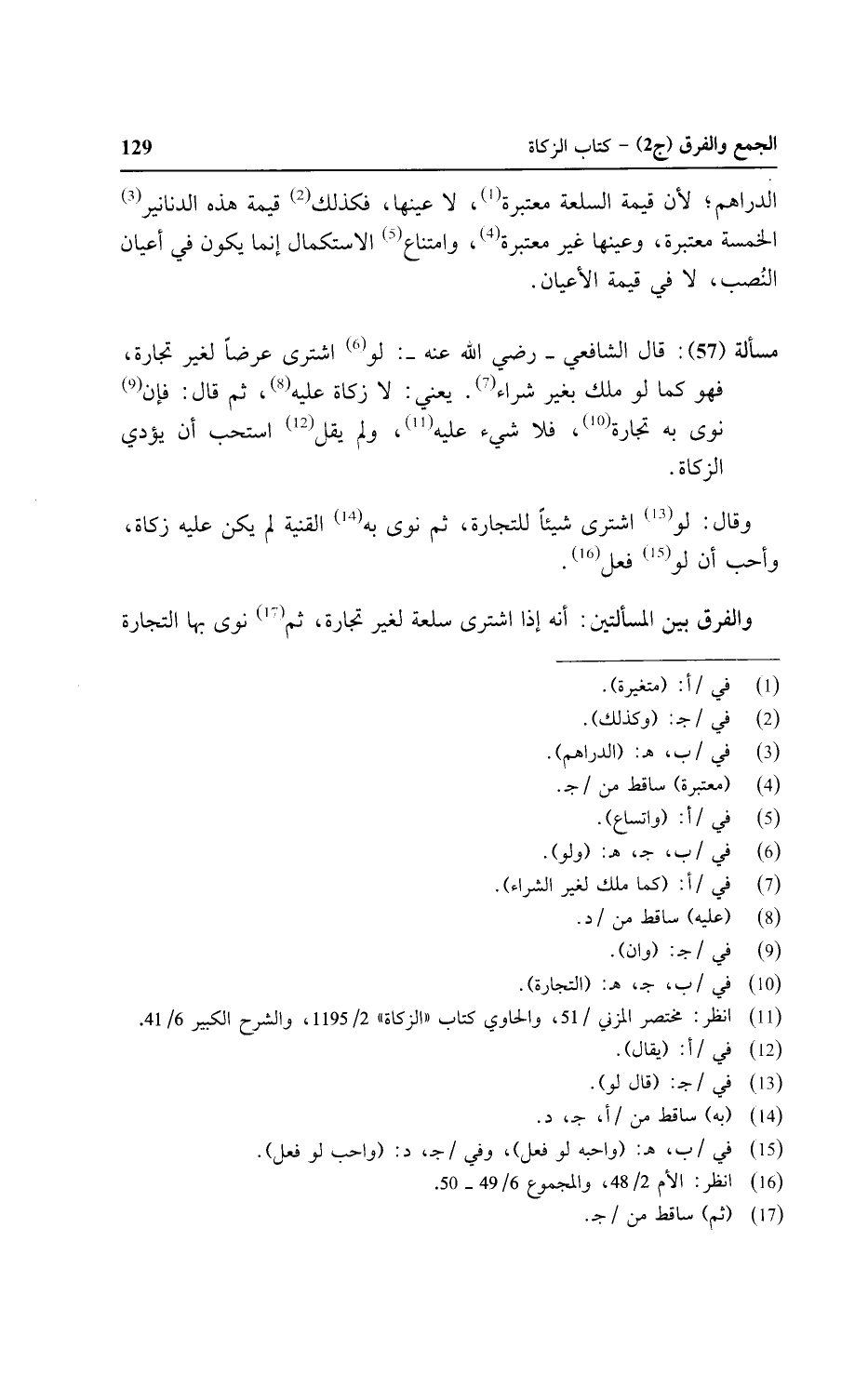 مسألة (٥٧): قال الشافعي - رضي الله عنه -: لو اشترى عرضًا لغير تجارة، فهو كما لو ملك بغير شراء. يعني: لا زكاة عليه، ثم قال: فإن نوى به تجارة، فلا شيء عليه، ولم يقل استحب أن يؤدي الزكاة.