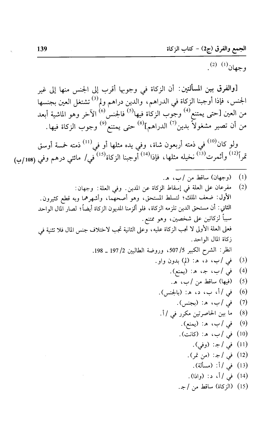 [الفرق بين المسألتين: أن الزكاة في وجوبها أقرب إلى الجنس منها إلى غير الجنس، فإذا أوجبنا الزكاة في الدراهم، والدين دراهم ولم تشتغل العين بجنسها من العين [حتى يمتنع وجوب الزكاة فيها فالجنس الآخر وهو الماشية أبعد من أن تصير مشغولًا بدين الدراهم] حتى يمتنع وجوب الزكاة فيها.