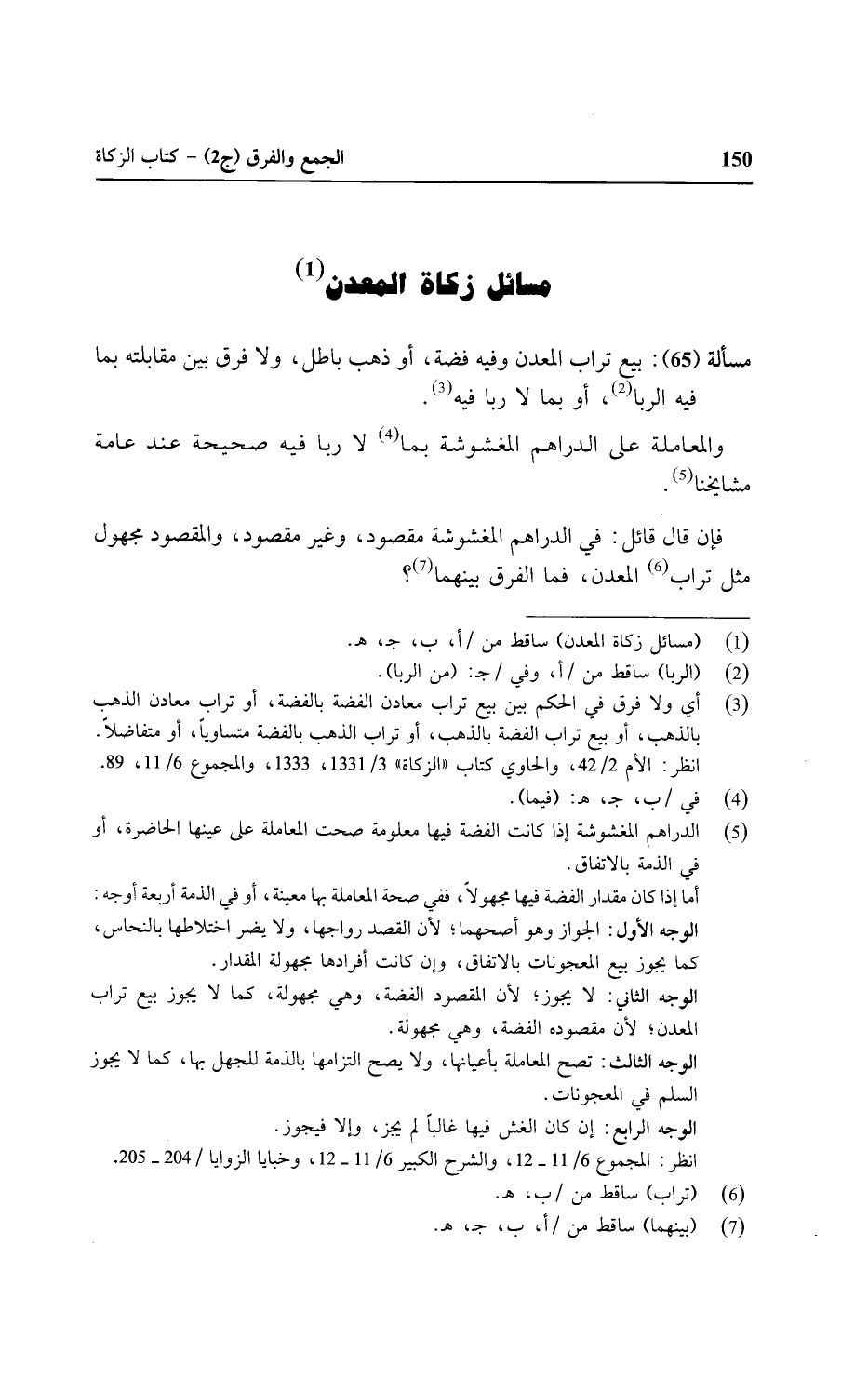 مسألة (٦٥): بيع تراب المعدن وفيه فضة، أو ذهب باطل، ولا فرق بين مقابلته بما فيه الربا، أو بما لا ربا فيه.