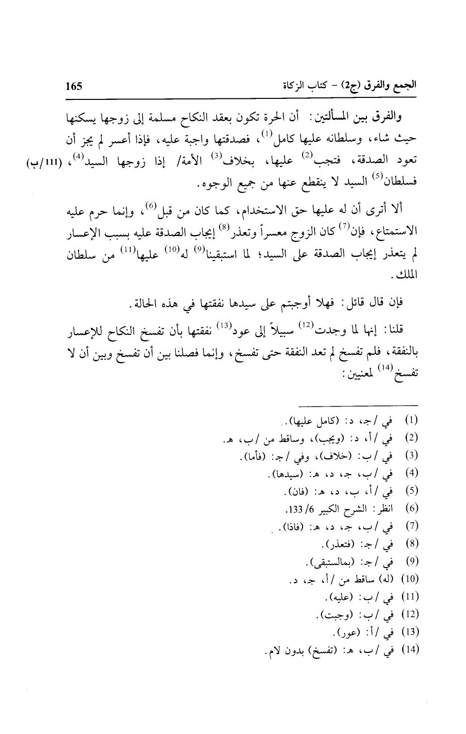 ألا أترى أن له عليها حق الاستخدام، كما كان من قبل، وإنما حرم عليم الاستمتاع، فأن كان الزوج معسرًا وتعذر إيجاب الصدقة عليه بسبب الإعسار لم يتعذر إيجاب الصدقة على السيد؛ لما استبقينا عليها .. من سلطان الملك.