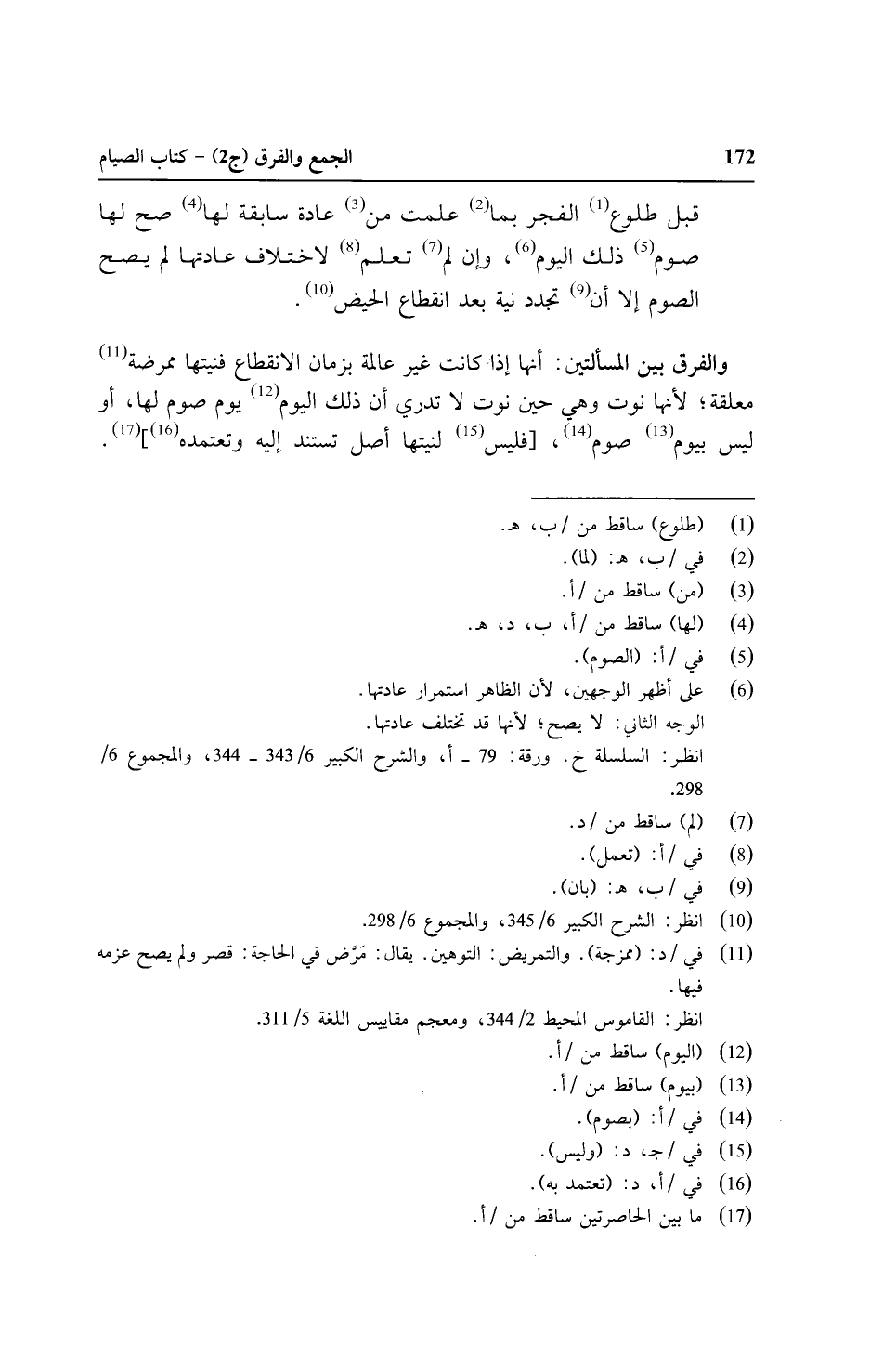 والفرق بين المسألتين: أنها إذا كانت غير عالمة بزمان الانقطاع فنيتها ممرضة معلقة؛ لأنها نوت وهي حين نوت لا تدري أن ذلك اليوم، يوم صوم لها، أو ليس بيوم صوم، [فليس لنيتها أصل تستند إليه وتعتمده].
