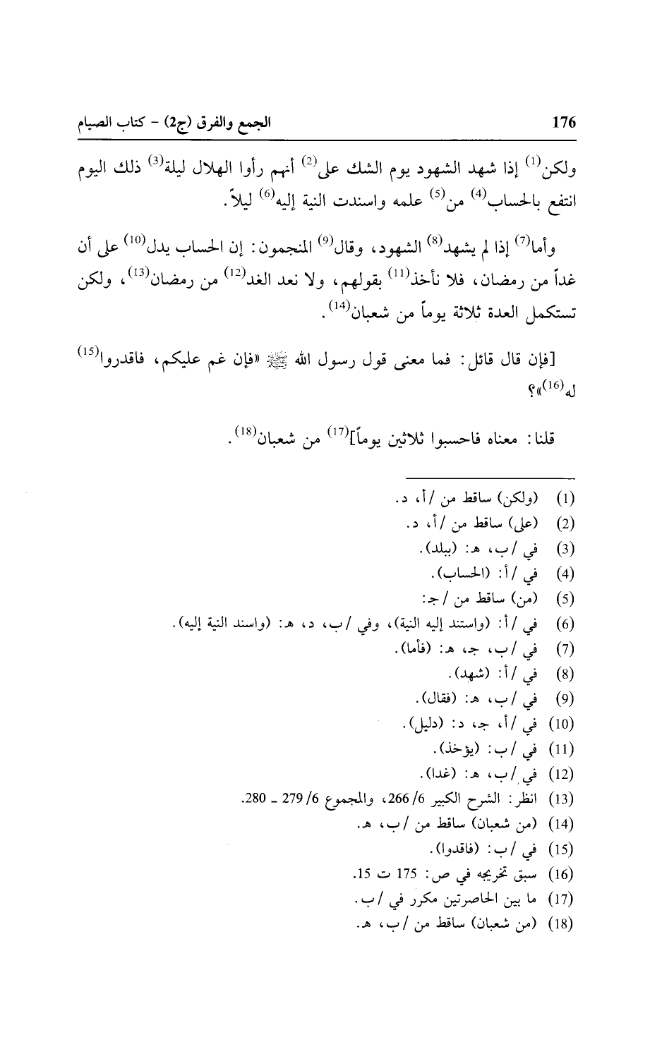 وأما إذا لم شهد الشهود، وقال المنجمون: إن الحساب يدل على أن غدًا من رمضان، فلا نأخذ بقولهم، ولا نعد الغد من رمضان، ولكن تستكمل العدة ثلاثة يومًا من شعبان.