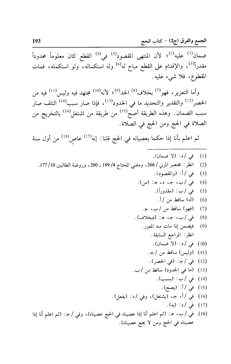 وأما التعزير، فهو بخلاف الحد؛ لأنه مجتهد فيه وليس فيه من الحصر والتقدير والتحديد ما في الحدود، فإذا صار سبب التلف صار سبب الضمان. وهذه الطريقة أصح من طريقة من اشتغل بالتخريج من الصلاة في الحج ومن الحج في الصلاة.