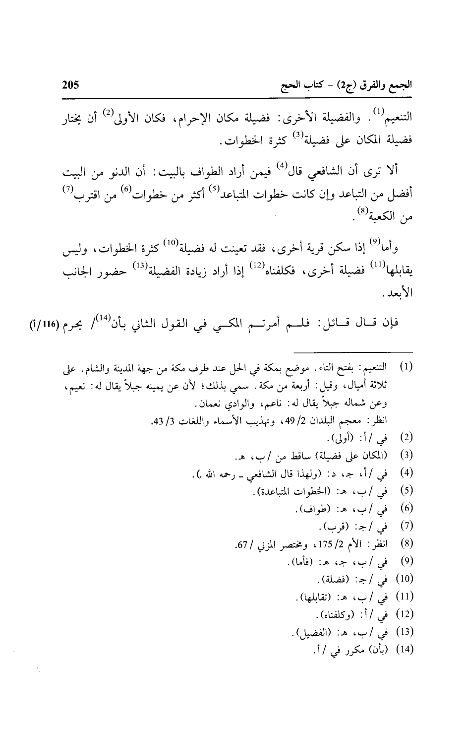 التنعيم. والفضيلة الأخرى: فضيلة مكان الإحرام، فكان الأولى أن يختار فضيلة المكان على فضيلة كثرة الخطوات.