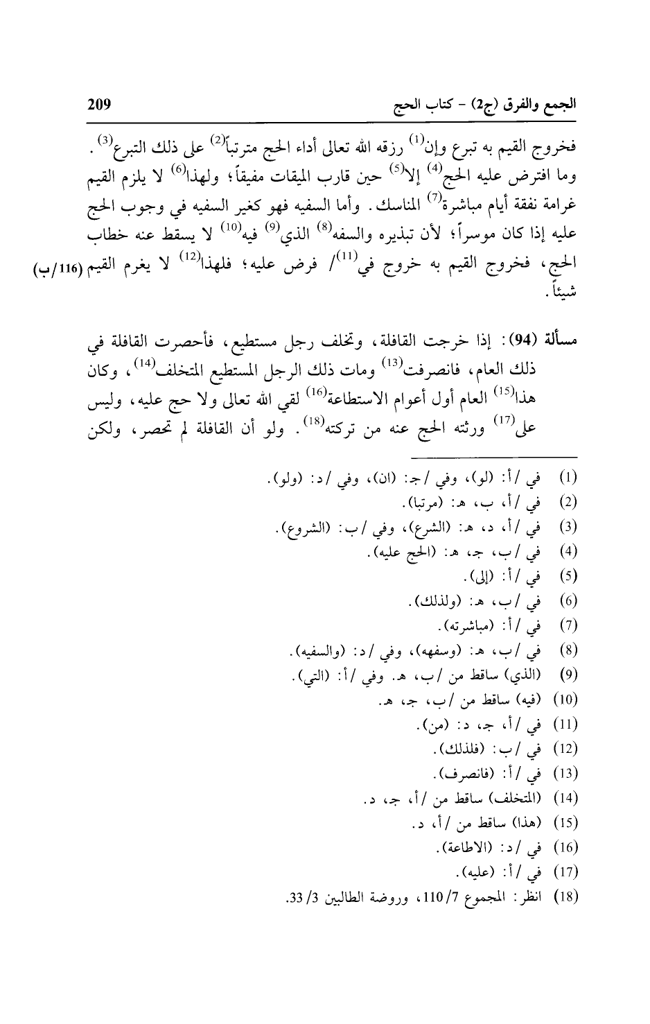 مسألة (٩٤): إذا خرجت القافلة، وتخلف رجل مستطيع، فأحصرت القافلة في ذلك العام، فانصرفت ومات ذلك رجل المستطيع المتخلف، وكان هذا العام أول أعوام الاستطاعة لقي الله تعالى ولا حج عليه، وليس على ورثته الحج عنه من تركته. ولو أن القافلة لم تحصر، ولكن