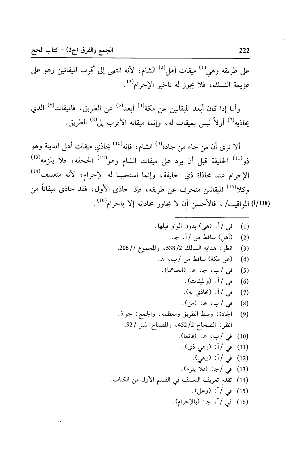 ألا ترى أن من جاء من جادة الشام, فإنه يحاذي ميقات أهل المدينة وهو ذو الحليفة قبل أن يرد على ميقات الشام وهون الجحفة, فلا يلزمه الإحرام عند محاذاة ذي الحليفة, وإنما استحببنا له الإحرام؛ لأنه متعسف وكلا الميقاتين منحرف عن طريقه, فإذا حاذى الأول, فقد حاذى ميقاتًا من المواقيت/ (١١٨ - أ) , فالأحسن أن لا يجاوز محاذاته إلا بإحرام.