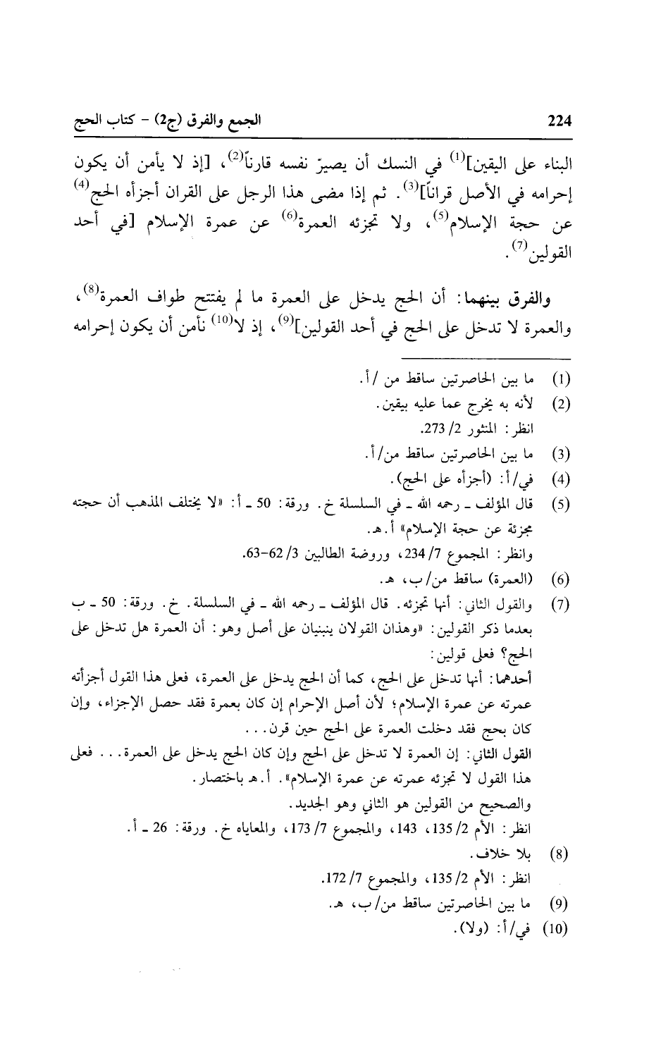 البناء على اليقين] في النسك أن يصير نفسه قارنًا, [إذ لا يأمن أن يكون إحرامه في الأصل قرآنًا]. ثم إذا مضى هذا الرجل على القرآن أجزأه الحج عن حجة الإسلام, ولا تجزئه العمرة عن عمرة الإسلام [في أحد القولين.