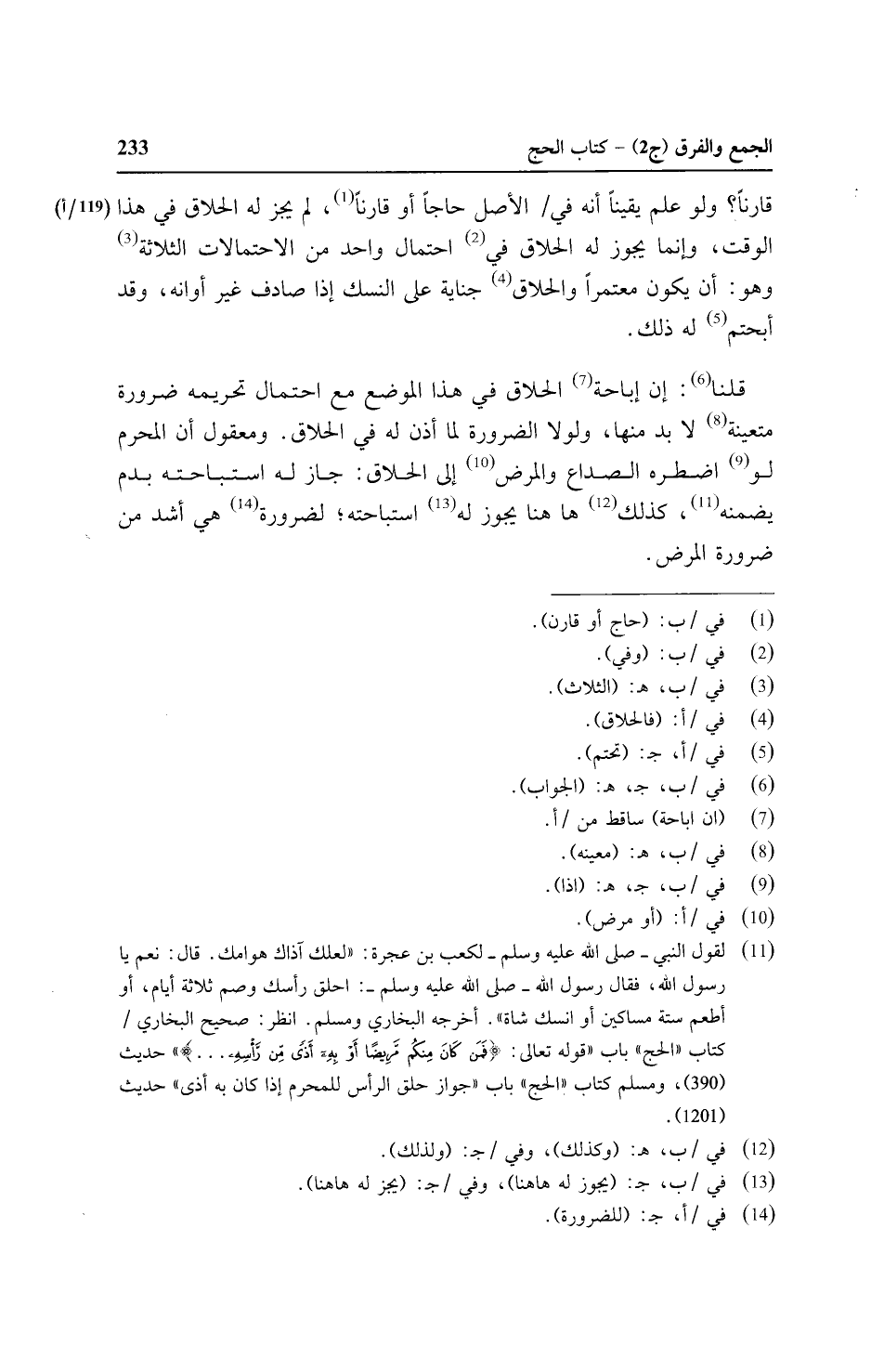 قلنا: إن إباحة الحلاق في هذا الموضع مع احتمال تحريمه ضرورة متعينة لابد منها, ولولا الضرورة لما أذن له في الحلاق. ومعقول أن المحرم لو اضطره الصداع والمرض إلى الحلاق: جاز له استباحته بدم يضمنه, كذلك هاهنا يجوز له استباحته؛ لضرورة هي أشد من ضرورة المرض.