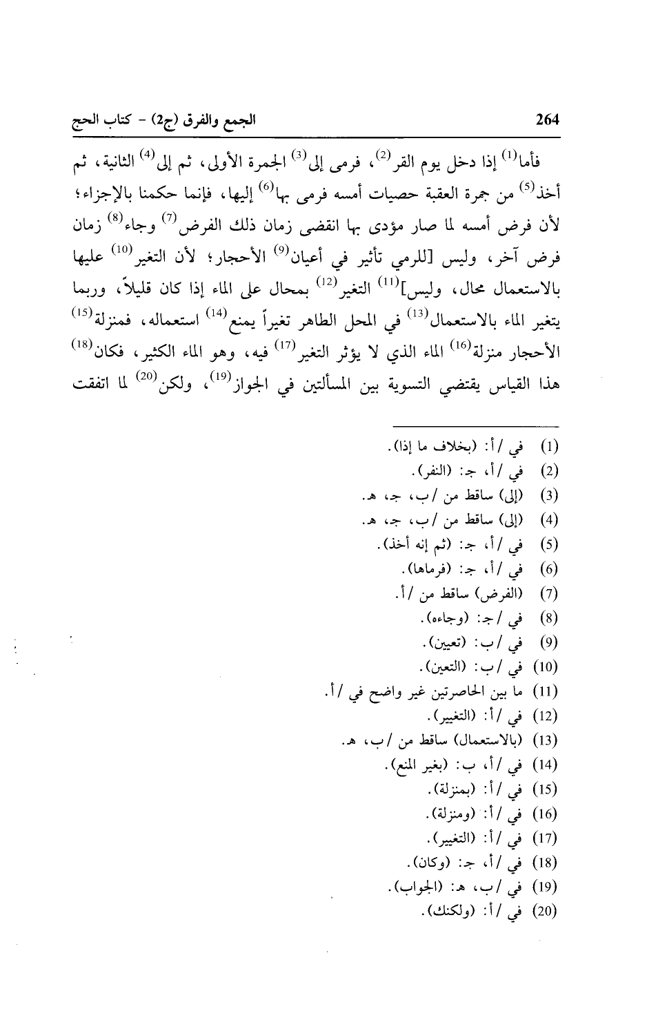 فأما إذا دخل يوم القر، فرمى إلى الجمرة الأولى، ثم إلى الثانية، ثم أخذ من جمرة العقبة حصيات أمسه فرمى بها إليها، فإنما حكمنا بالإجزاء؛ لأن فرض أمسه لما صار مؤدى بها انقضى زمان ذلك الفرض وجاء زمان فرض أخر، وليس [للرمي تأثير في أعيان الأحجار؛ لأن التغير عليها بالاستعمال محال، وليس] التغير بمحال على الماء إذا كان قليلًا، وربما يتغير الماء بالاستعمال في المحل الطاهر تغيرًا يمنع استعماله، فمنزلة الأحجار منزلة الماء الذي لا يؤثر التغير فيه، وهو الماء الكثير، فكان هذا القياس يقتضي التسوية بين المسألتين في الجواز، ولكن لما اتفقت