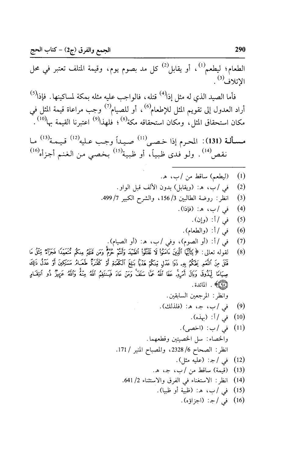 مسألة (١٣١): المحرم إذا خصي صيدًا وجب عليه قيمة ما نقص. ولو فدى ظبيًا، أو ظبية بخصي من الغنم أجزأه
